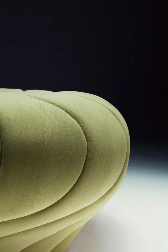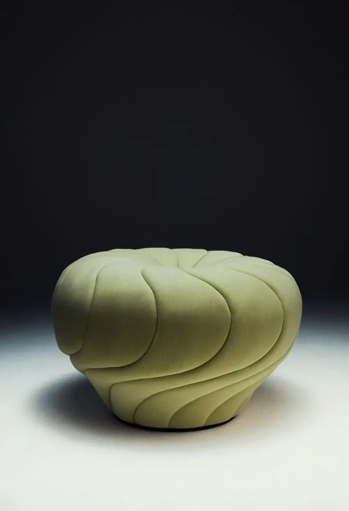 Champignon by FrontDimensions: W 97 x D 97 x H 70 cmMaterials: FabricDrawing inspiration from the surprising and unique shape of mushrooms, Front imagined a strikingly singular pouf design that sprouts from the ground. Sitting on its cap, the body interacts with the soft shape that adapts to the user’s position. The swivel base further heightens the sense of weightlessness it delivers. Bring a bit of nature into your interior: let your guests go hunting for mushrooms or plant one in your room for an eye-catching statement.Sofia Lagerkvist and Anna Lindgren are the members of the Swedish design studio Front. Their works are based on common discussions, explorations and experiments and they collaborate in all projects from initial ideas to the final product. Front’s design objects often communicate a story to the observer about the design process, about the material it is made of or about conventions within the design field. Demonstrating their innovative and experimental mindset, Front have been known to assign part of the making of their designs to animals, computers or machines. They have made constantly changing interiors, created objects with explosions, robotic furniture and a range of furniture inspired by their fascination with magic. Front’s work is represented at MoMA, Victoria & Albert Museum, M+, Nationalmuseum, Vitra Design Museum and Centre Pompidou. La Manufacture is a brand where design and fashion collide. A brand where a certain je ne sais quoi of French allure meets the best Italian craftsmanship. A certain idea of French lifestyle (re) interpreted by world-renowned international designers. Each collection will highlight worldclass craftsmanship, timeless aesthetics and enduring quality.