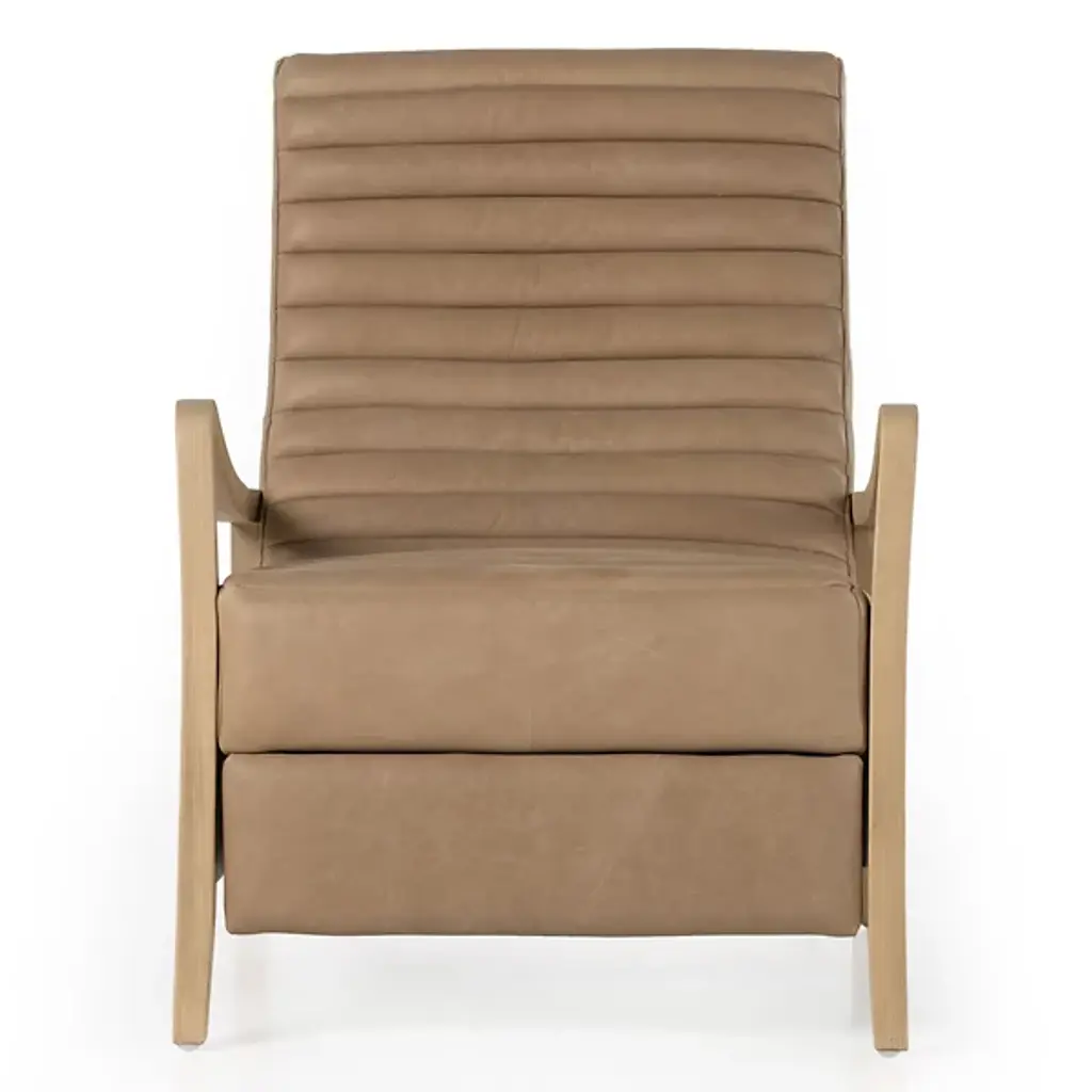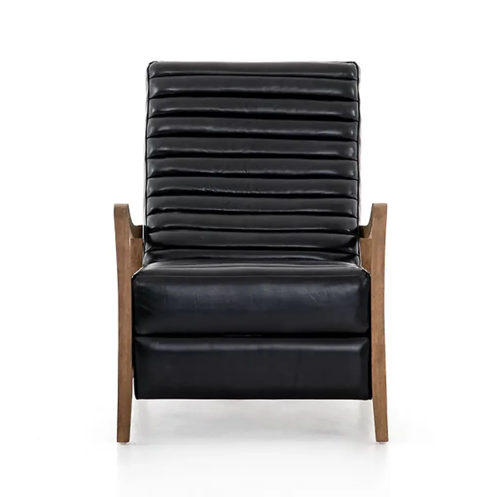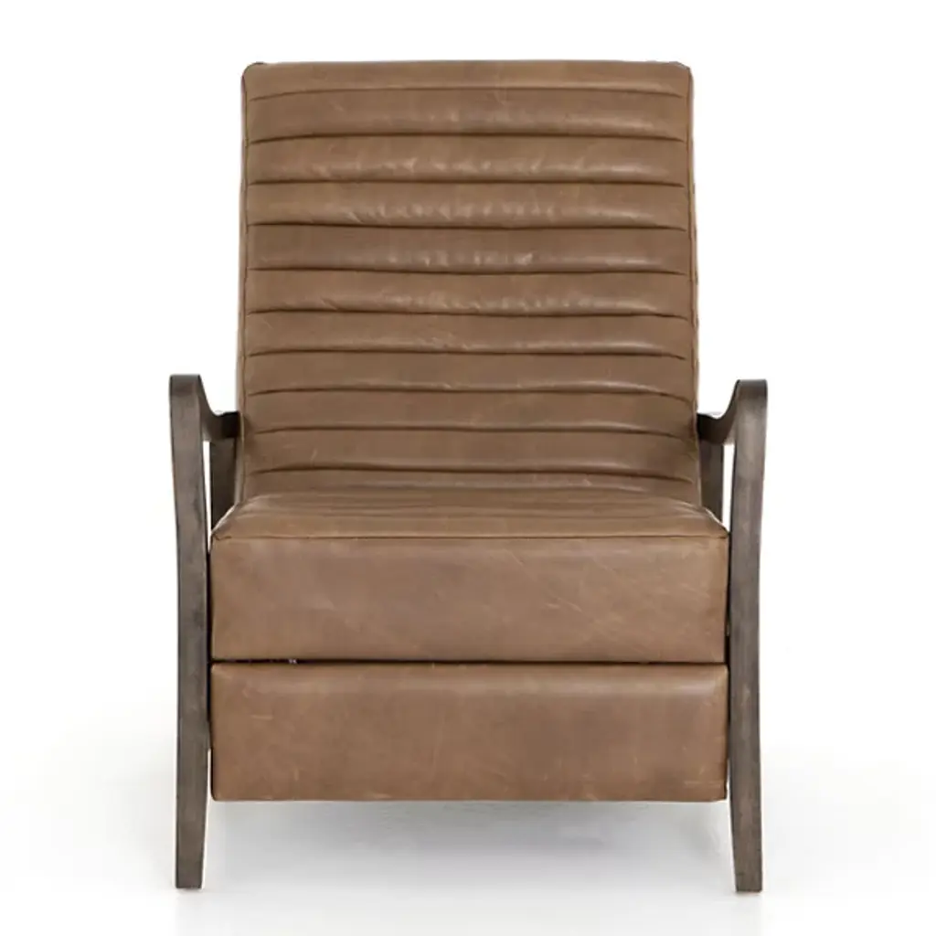 Sit back and relax with the Chance Recliner by Four Hands. This push recliner allows you to easily adjust your position as you are enveloped by comfortable, top-grain leather. Your recliner is defined by its intricately ribbed seatback and frame of solid parawood. The arms of the Chance Recliner neatly contour to blend seamlessly into the seat’s legs for a look of continuity. Thickly cut beams rest at the sides of this chair to interconnect the recliner’s front and rear legs.
