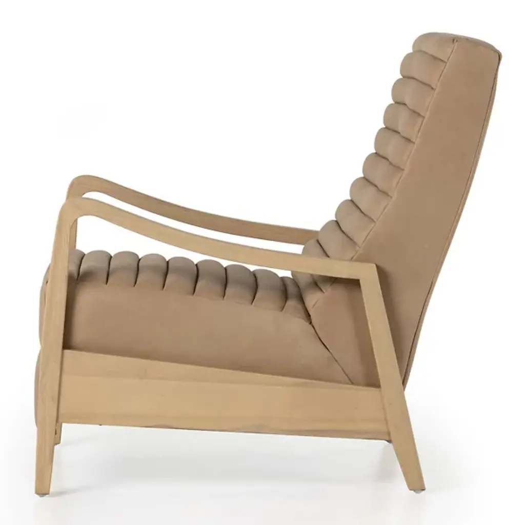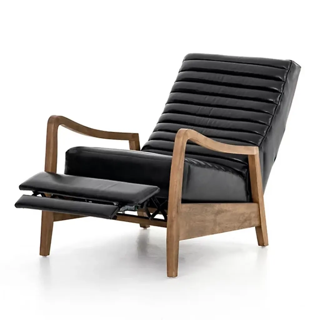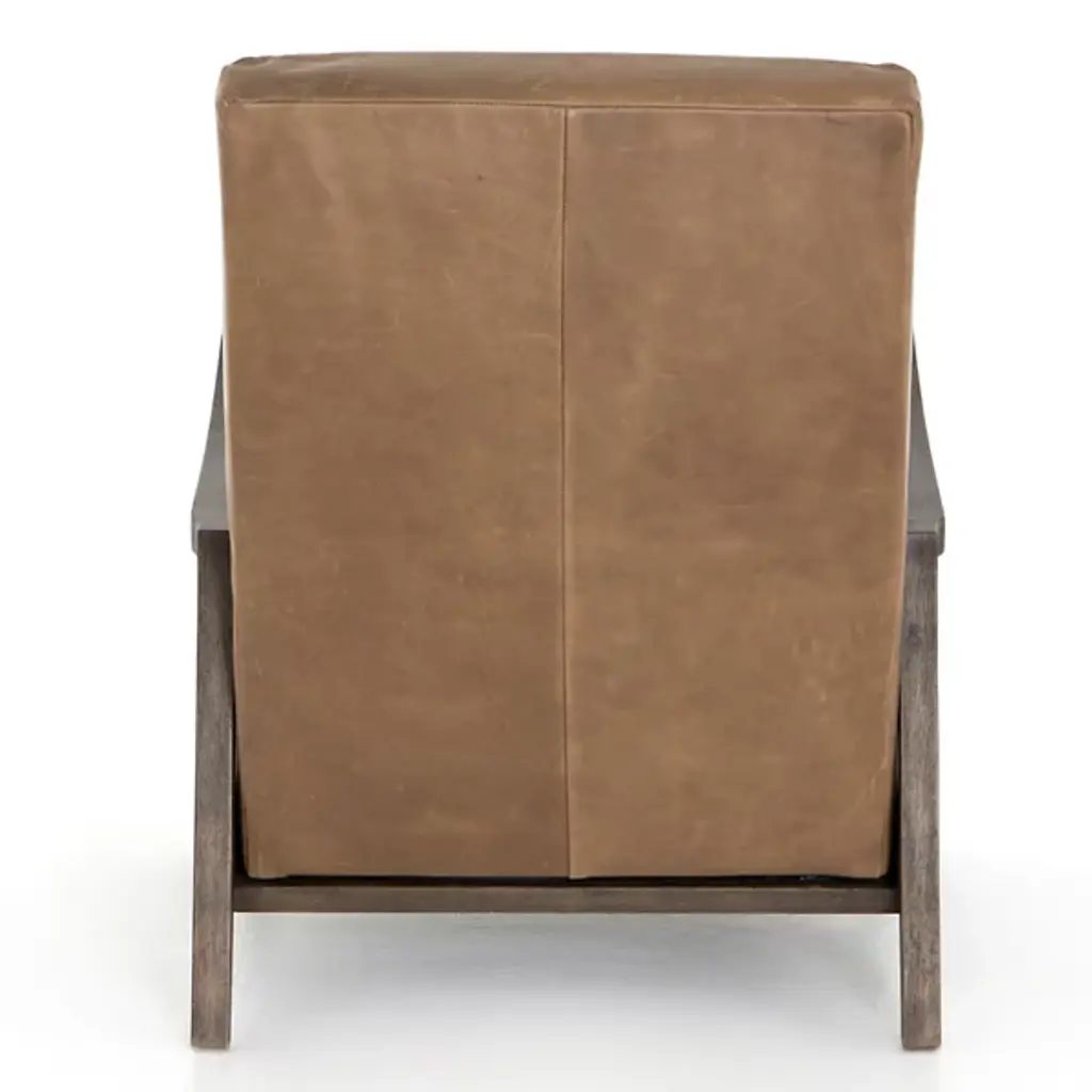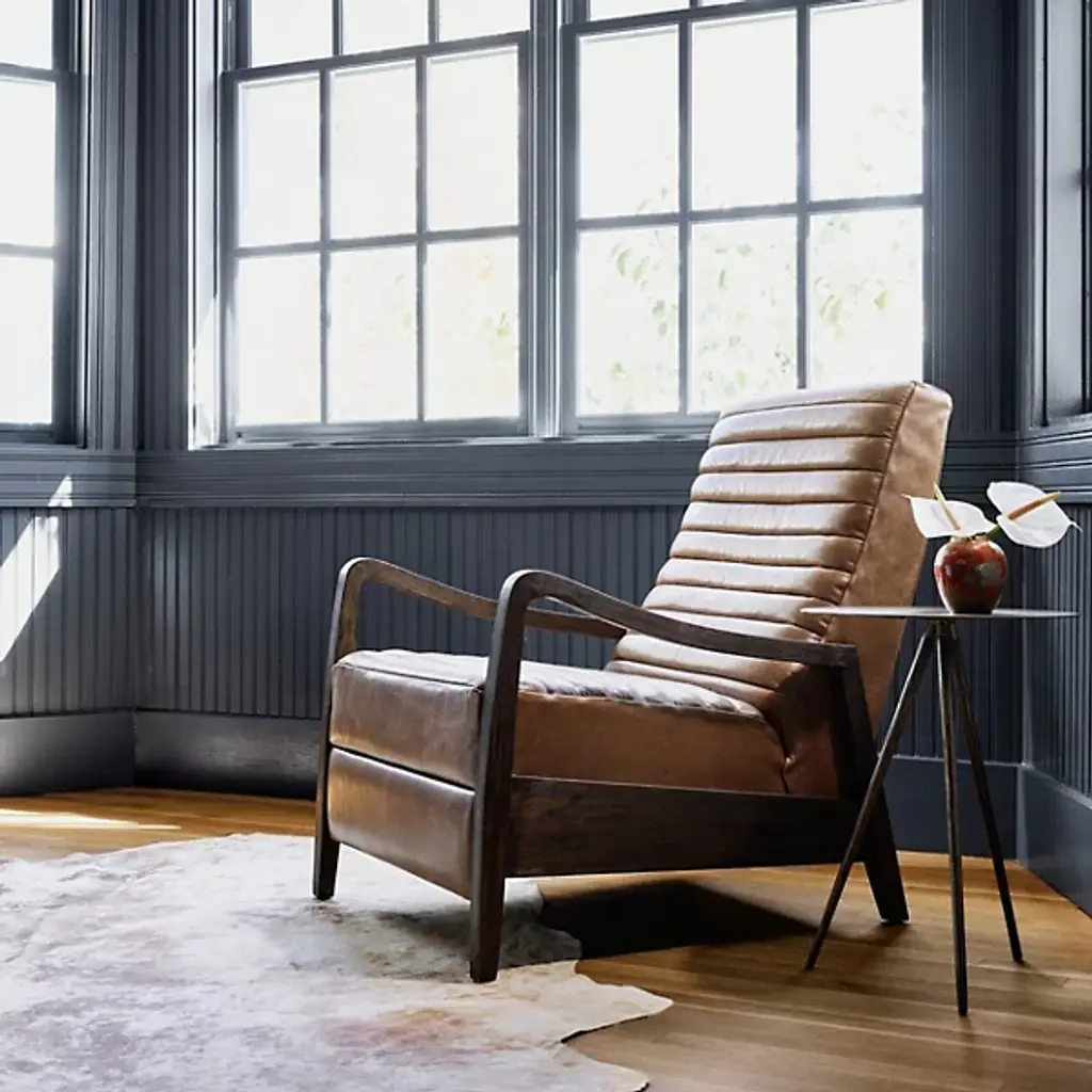 Sit back and relax with the Chance Recliner by Four Hands. This push recliner allows you to easily adjust your position as you are enveloped by comfortable, top-grain leather. Your recliner is defined by its intricately ribbed seatback and frame of solid parawood. The arms of the Chance Recliner neatly contour to blend seamlessly into the seat’s legs for a look of continuity. Thickly cut beams rest at the sides of this chair to interconnect the recliner’s front and rear legs.