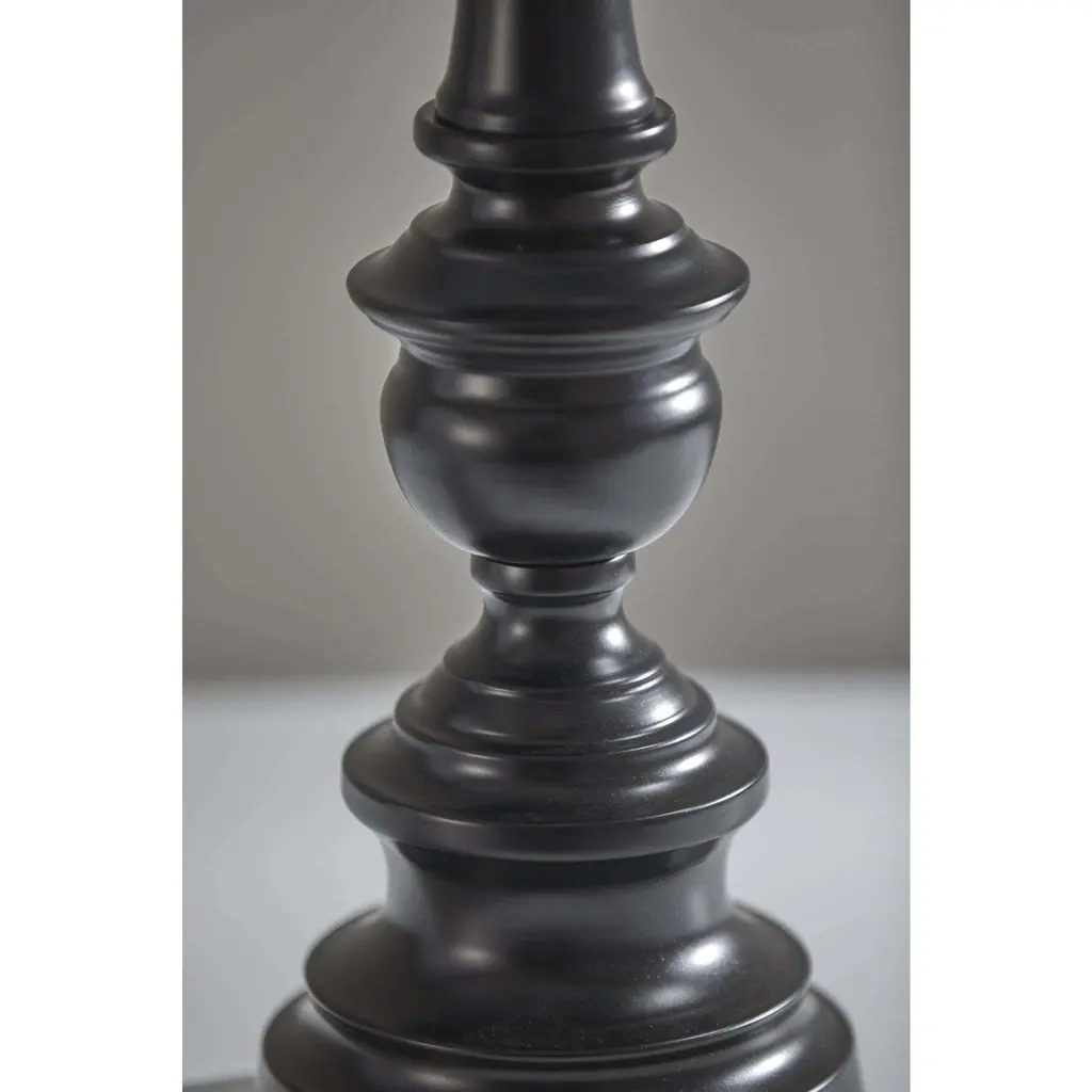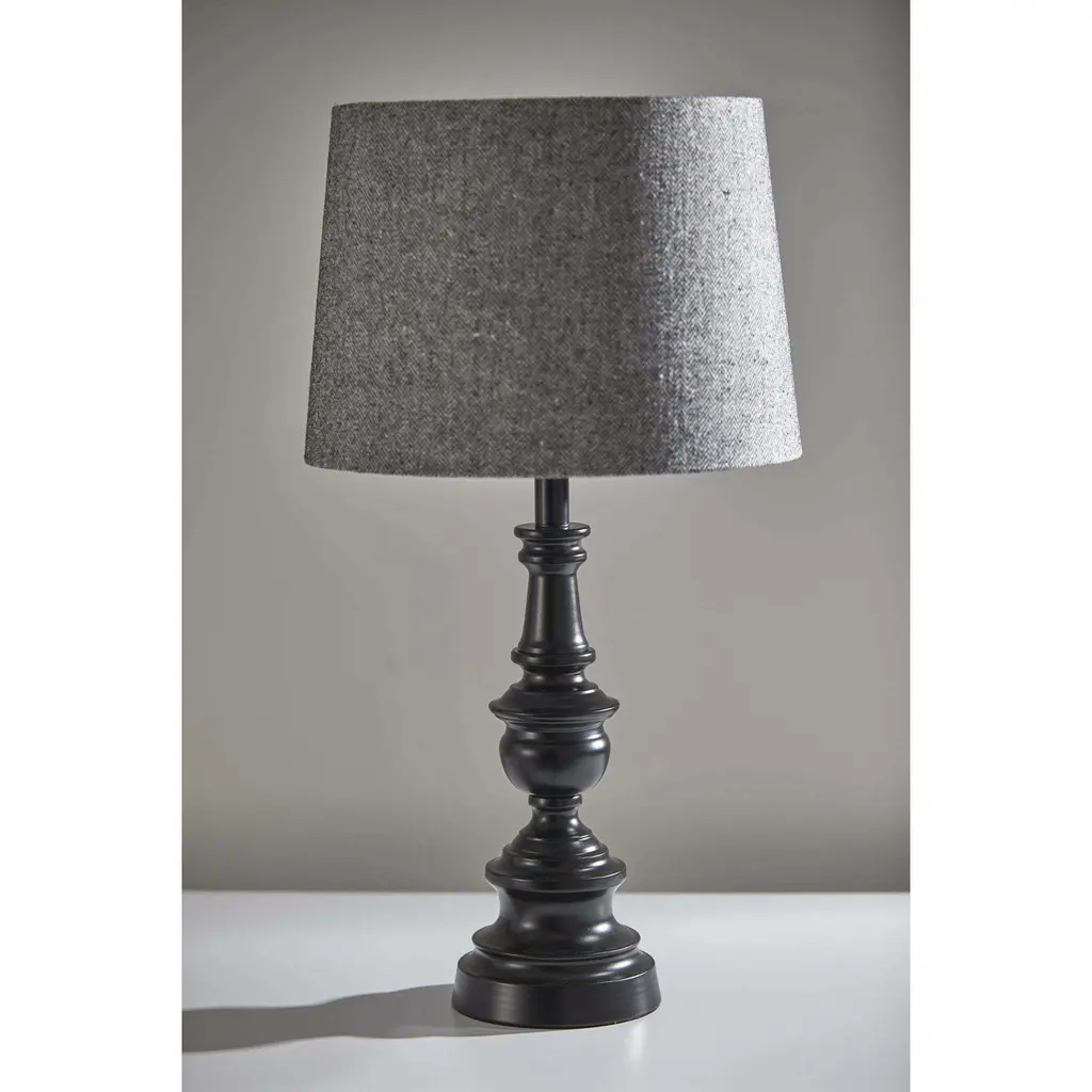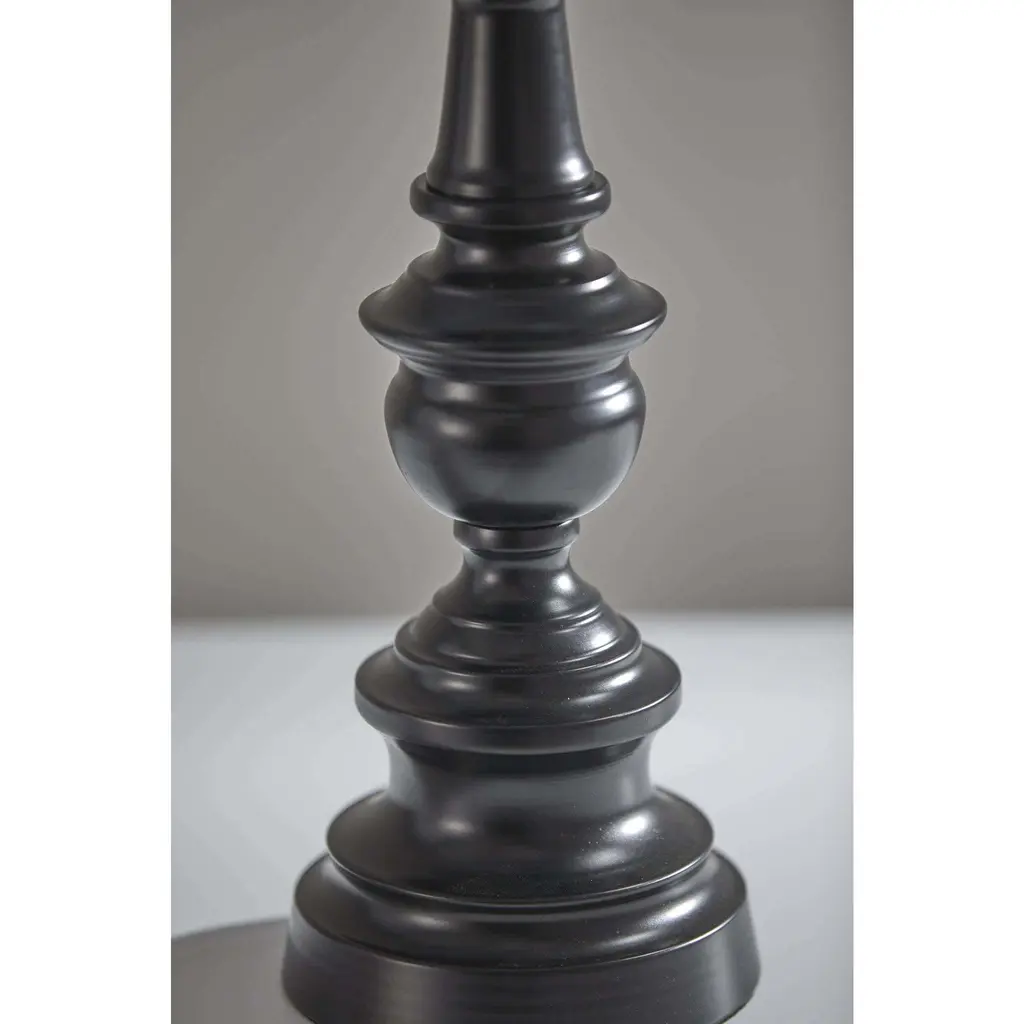 This beautiful bronze lamp set will make the perfect addition to your home. It comes with two table lamps and one floor lamp. The lamp set has a nice dark bronze finish. Atop the base is a textured herringbone hardback taper drum shade. Each lamp takes a 150 Watt bulb or LED/CFL 3-way equivalent.