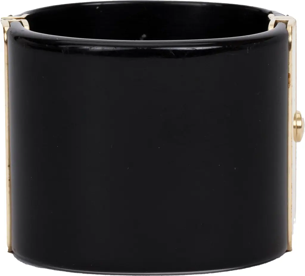 Chanel Black Lucite Hinged Oval Cuff Cc