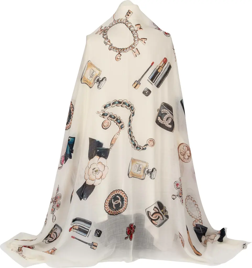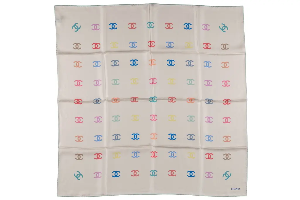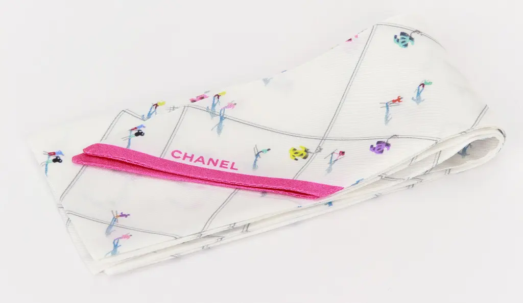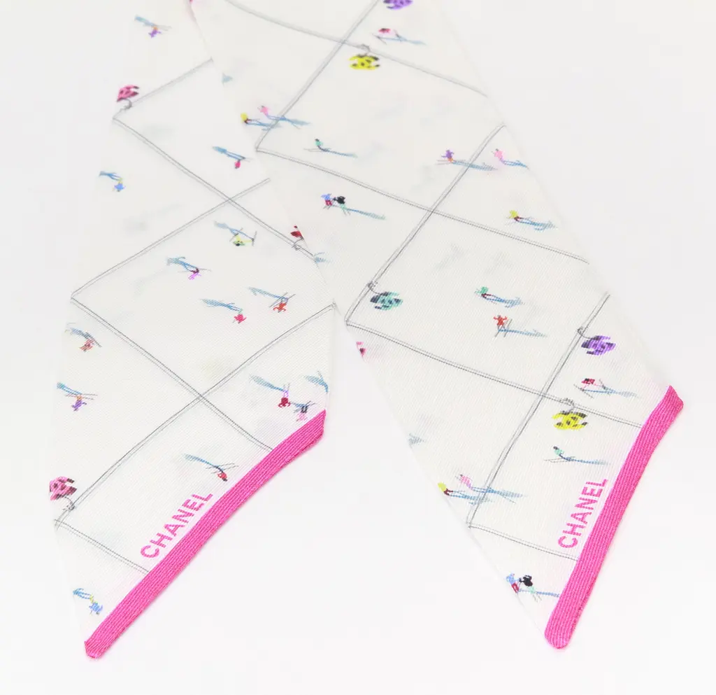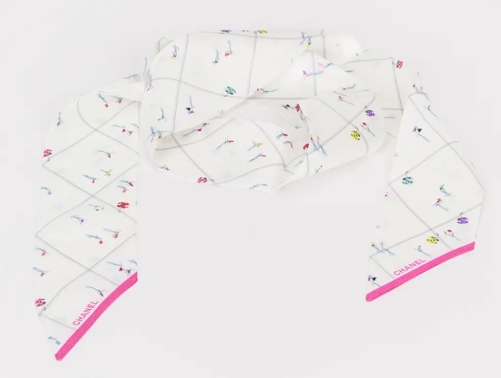 Chanel brand new white/celeste, pink silk twilly, coco niege collection, 100% silk, 48" x 2"