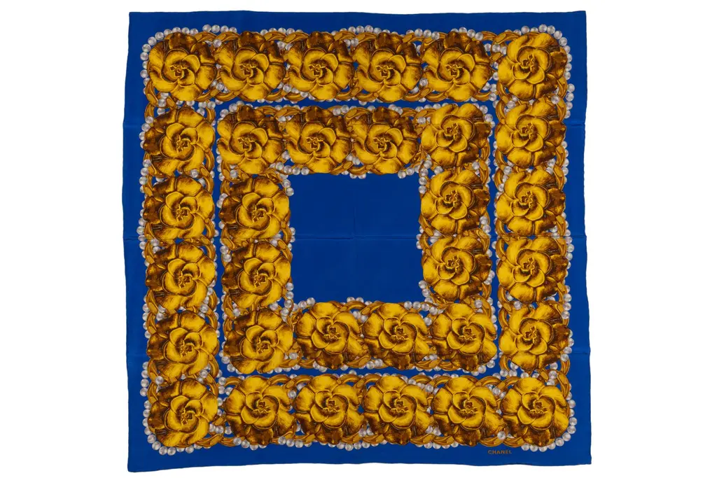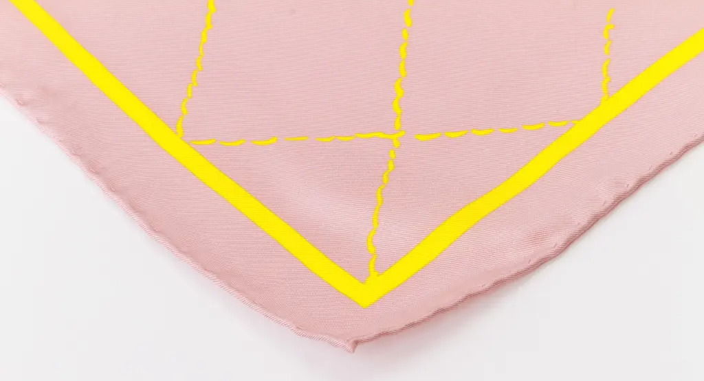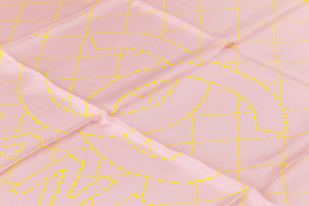 Chanel new pink and yellow quilted logo scarf , 100% silk, 35" x 35"