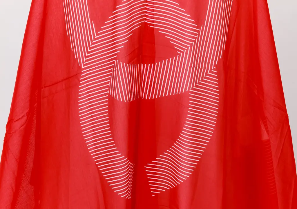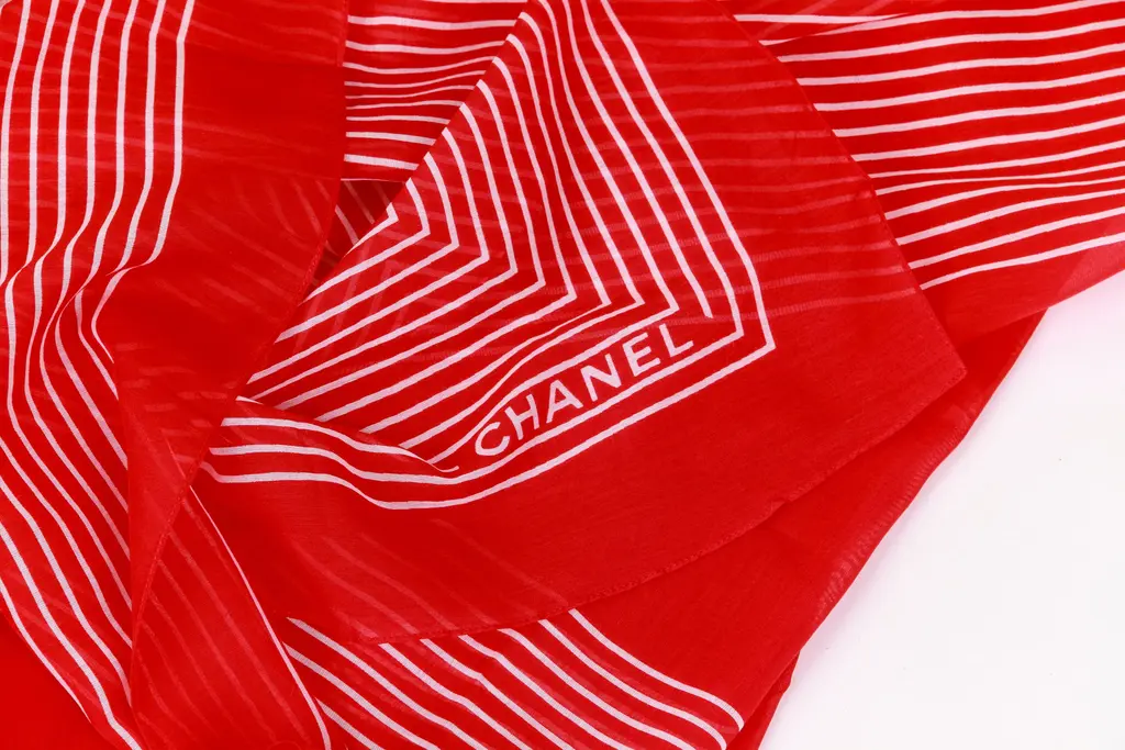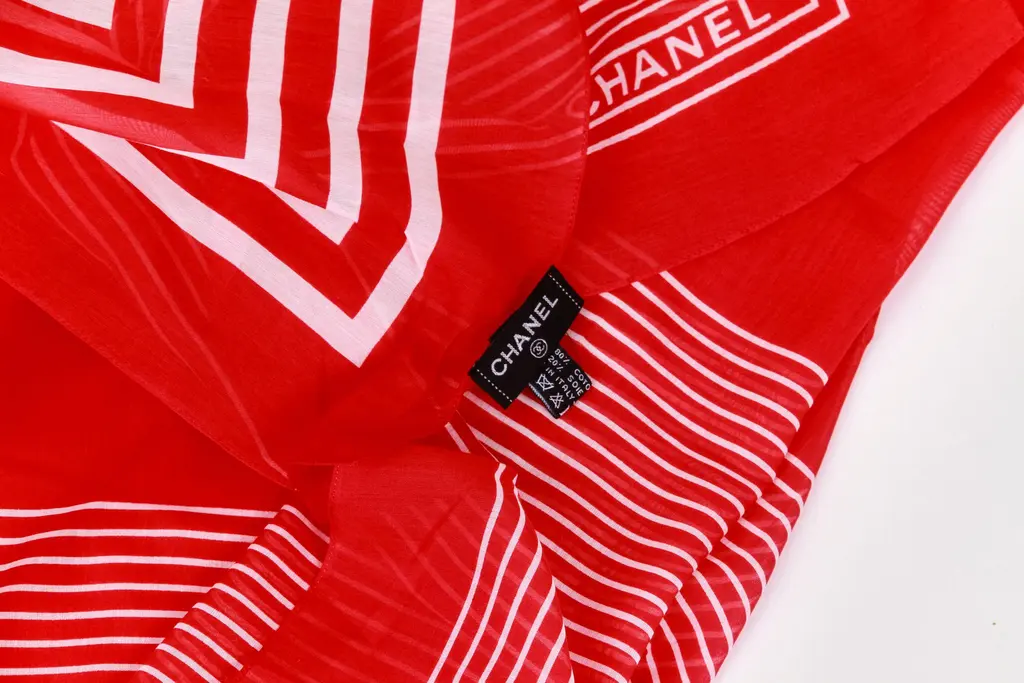 Chanel new red and white striped design sarong , 80% cotton, 20% silk, 78" x 55"