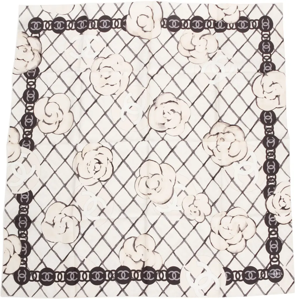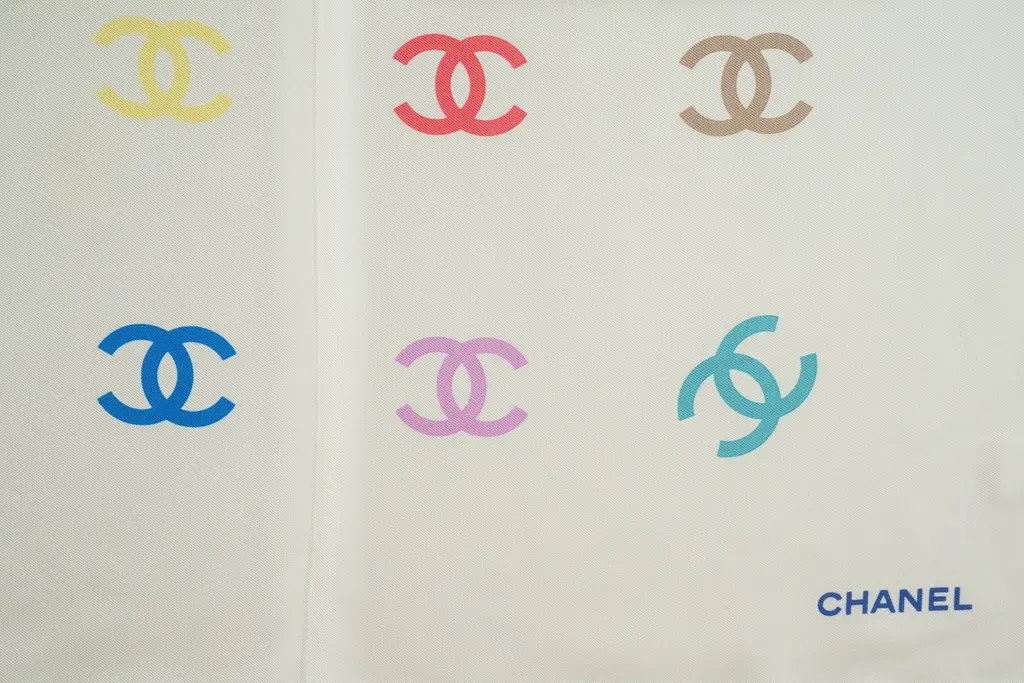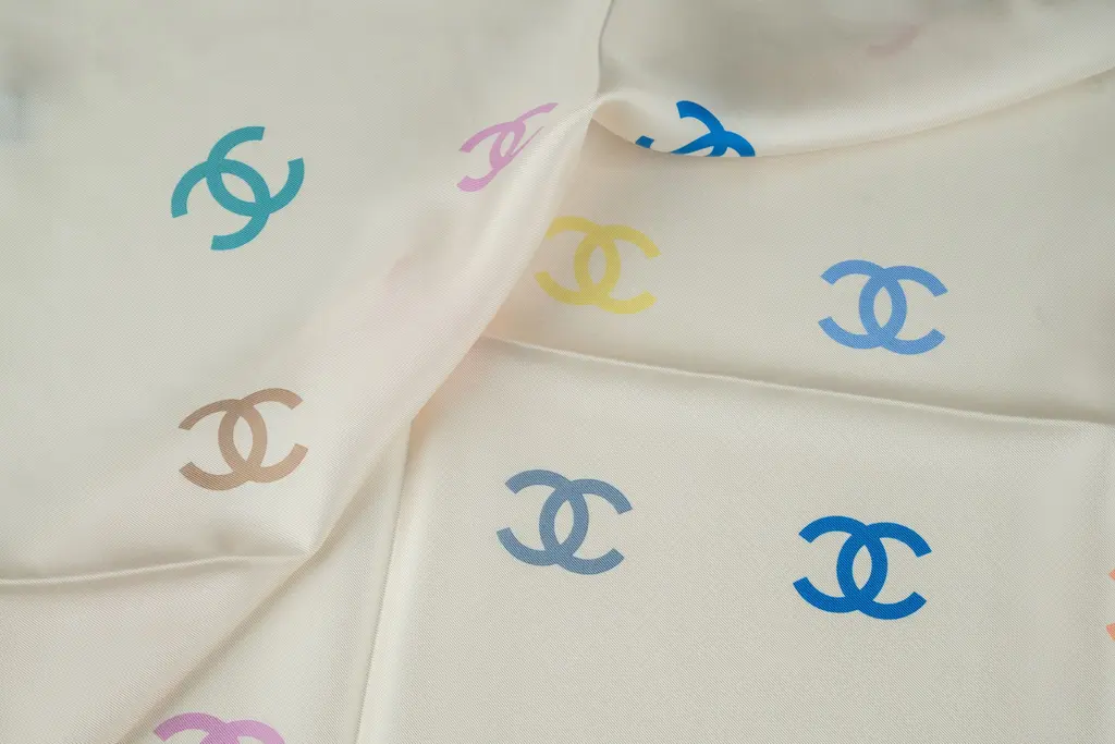 Chanel New Silk White Cc Logo Scarf
