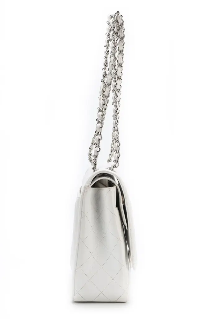 Chanel excellent condition maxi flap in white caviar leather and silver tone hardware. Collection 15. Shoulder drop 11��������/19���. Store price $11,500. Comes with hologram and original box.