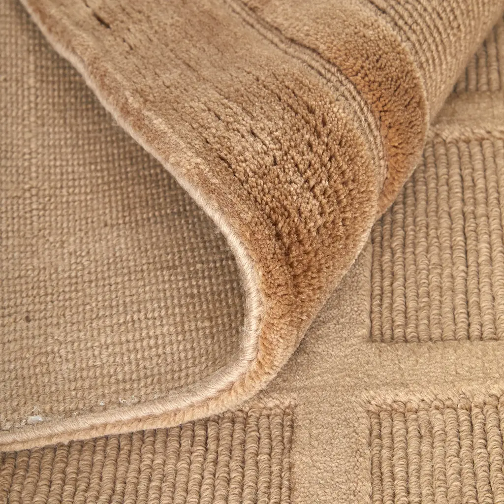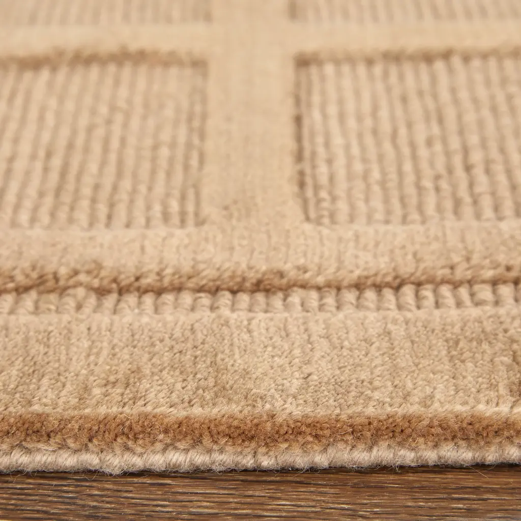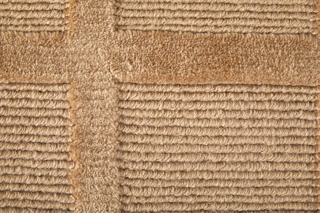 Collection: Channels Colors: Tan Construction: Hand Knotted Material: Face: 100%Wool Pile: Low Pile Pile Height: 0.39" Styles: Contemporary,Transitional,Bohemian Backing: N/A Made In: India Thickness: 0.39" Price Range: $$$$$ (Premium)