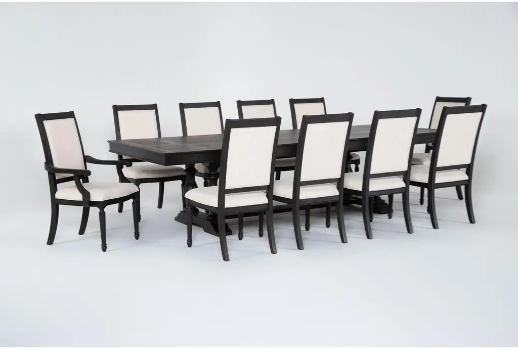 Chapleau Iii Black Wood 92-120" Extendable Double Pedestal Dining With Side Chair + Armchair Set For 10