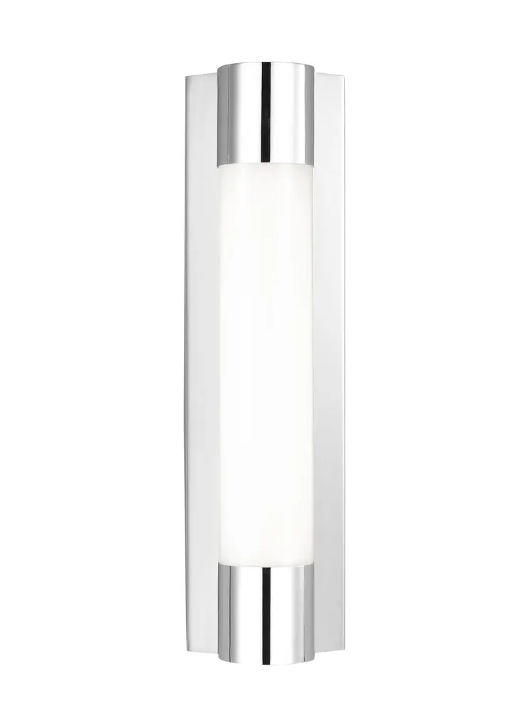 A study of geometric forms created as a combination of a cylindrical bar captured by a triangular back plate. The Loring sconces take advantage of advances in LED technology to evenly light their tubular glass shades with no openings needed to change a bulb. As such, these sculptural lights are a seamless intersection of geometric forms –modern in expression yet versatile in application. Designer: Chapman & Myers Extension: 4 1/4 Backplate: DP:2'' W:5'' H:18'' OB UP:9'' OB DOWN:2 1/2'' Rectangular Shade/Glass: milk white glass shade Shade Diameter: 2.875 Lamping: 1 Array Integrated 10 watt light bulb Voltage: 120 Bulb Included: Yes Bulb Type: LED Safety Rating Location: damp
