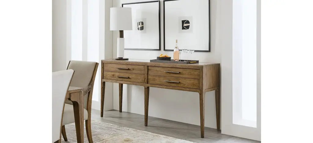 The Chapman Sideboard features a curated mix of materials that present an updated look inspired by downtown urban living. Designed for who may live in loft-style spaces or homes with open concept floorplans, pieces are smaller in scale, yet are thoughtfully designed to provide plenty of storage and exude a sophisticated style.