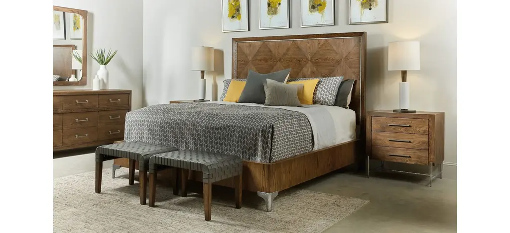 The modern lines of the Chapman nightstand are blended with contemproary aesthetic to create a unique offering for your bedroom. Custom hardware and unique hand-hammered metal accents in a forged pewter finish add to the contemporary style.