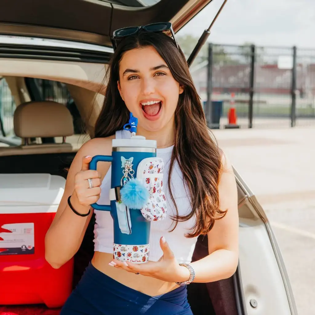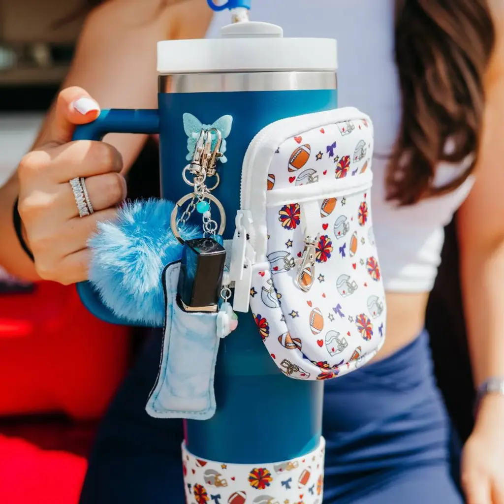 Need a water bottle makeover? Be bold with our vibrant CharCharms Bottle Pouch! This tumbler pouch can hold all of your essentials like your phone, makeup, wallet, gum, keys - whatever you like to keep with you! You can also customize this water bottle bag by adding accessories to the built in hook. This bottle pouch transforms your tumbler into a fun and functional purse for adventures on-the-go!