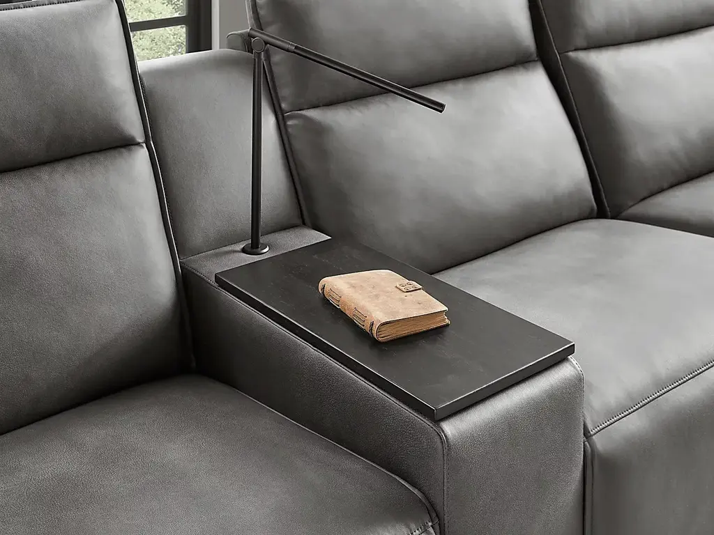 Discover the unlimited possibilities of the dual power reclining ModularTwo, thoughtfully designed with both comfort and flexibility in mind. Contemporary in style and upholstered in a plush suede-soft microfiber, its tailored silhouette is enhanced by welted track arms and tufted back cushions for a look of refined elegance and serenity. Each piece is upholstered on all sides, offering endless opportunities for both reconfiguration as well as individual use. Dual power reclining functionality allows for easy adjustment in the headrest and footrest, providing the ultimate in personalized comfort. The center console includes a touch-activated reading light and swivel-top wood table with hidden storage for easy access to your lounging essentials. Select a preconfigured design or visit a showroom to learn about individual components and create the modular solution perfect for your space and style. Upholstery: 100% Polyester