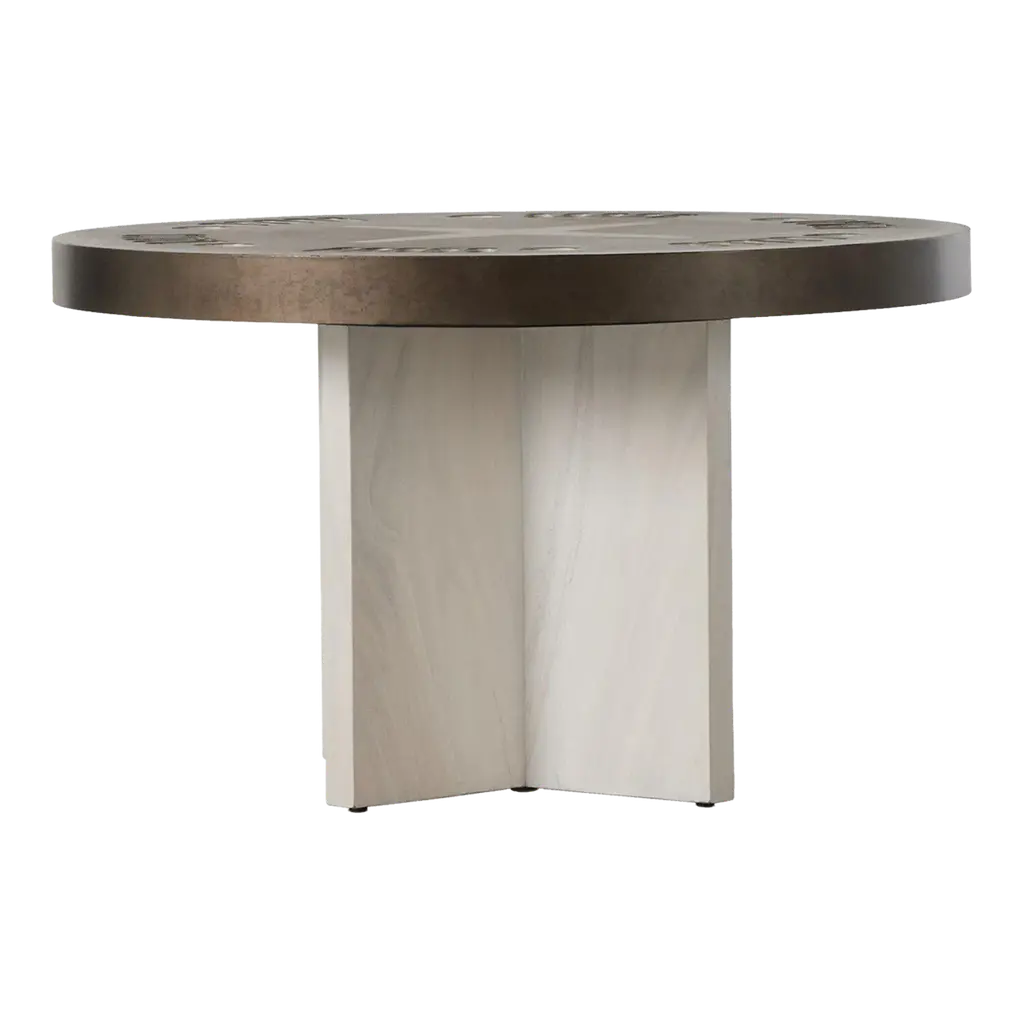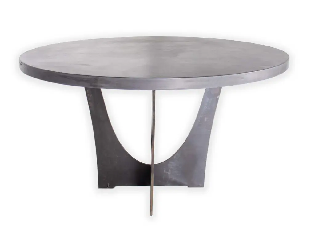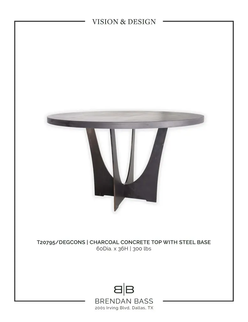Charcoal concrete top with ebonized steel counter top height base. Base can be customized.Size can be customized.Finish can be customized.Piece from our custom line, Vision and Design. Exclusive to Brendan Bass.