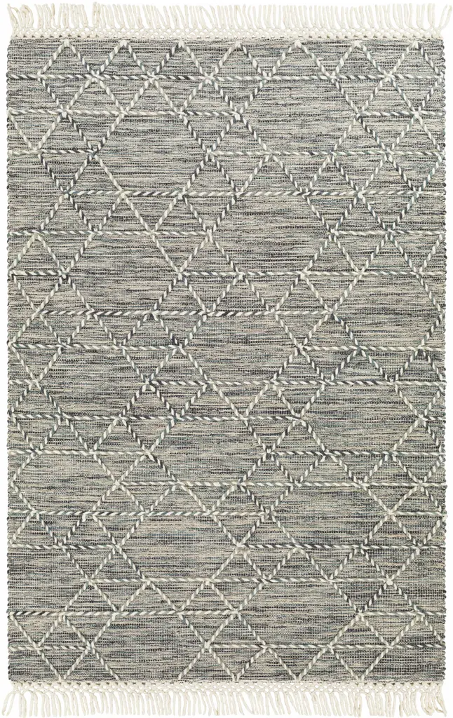 Charcoal Cream Sapadun Wool Blend Braided Tassel Area Rug - Clearance - 10' X 14' Rectangle