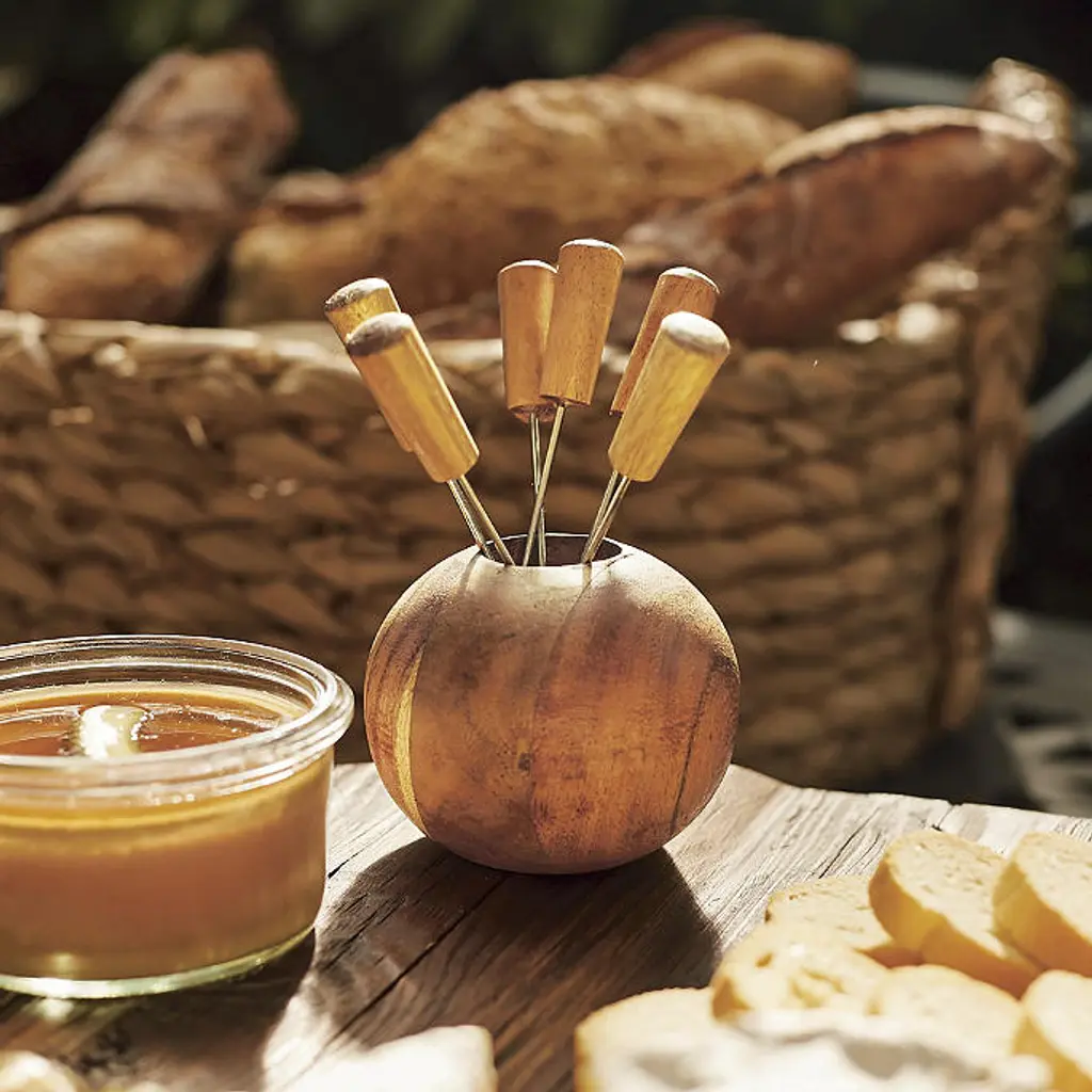 Select and serve delectable meats, cheeses, dried fruits, pickled vegetables and olives at your next gathering with our sturdy and stylish charcuterie picks. The single stainless steel tine has an acacia handle finished with a natural polish, helping to bring out the wood's beautiful grain. It's a great companion to your favorite charcuterie board. Acacia wood handle Stainless steel tine with pointed tip Wood pick holder Natural polish Hand wash Imported A Frontgate exclusive. At Frontgate, our primary focus is quality. We guarantee that every product we sell will stand up to the supreme test – our customers' satisfaction. To learn more about our policies, visit our Shipping & Processing, Returns & Exchanges and Warranty & Price Guarantee pages.
