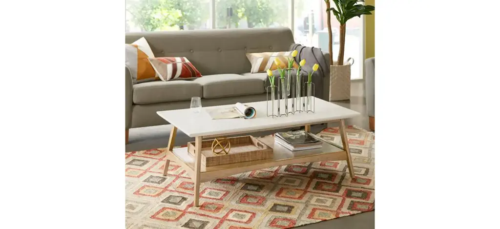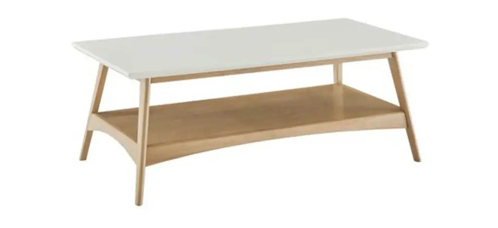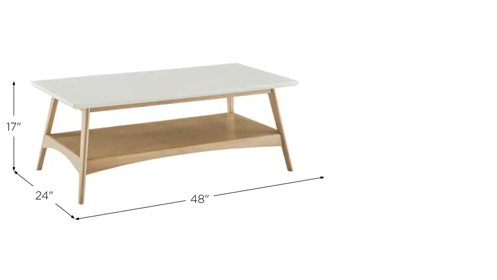With a white top and a classic, mid-century frame in a rich wood finish, the Charlevoix Rectangle Coffee Table brings a fresh look with a bold statement.