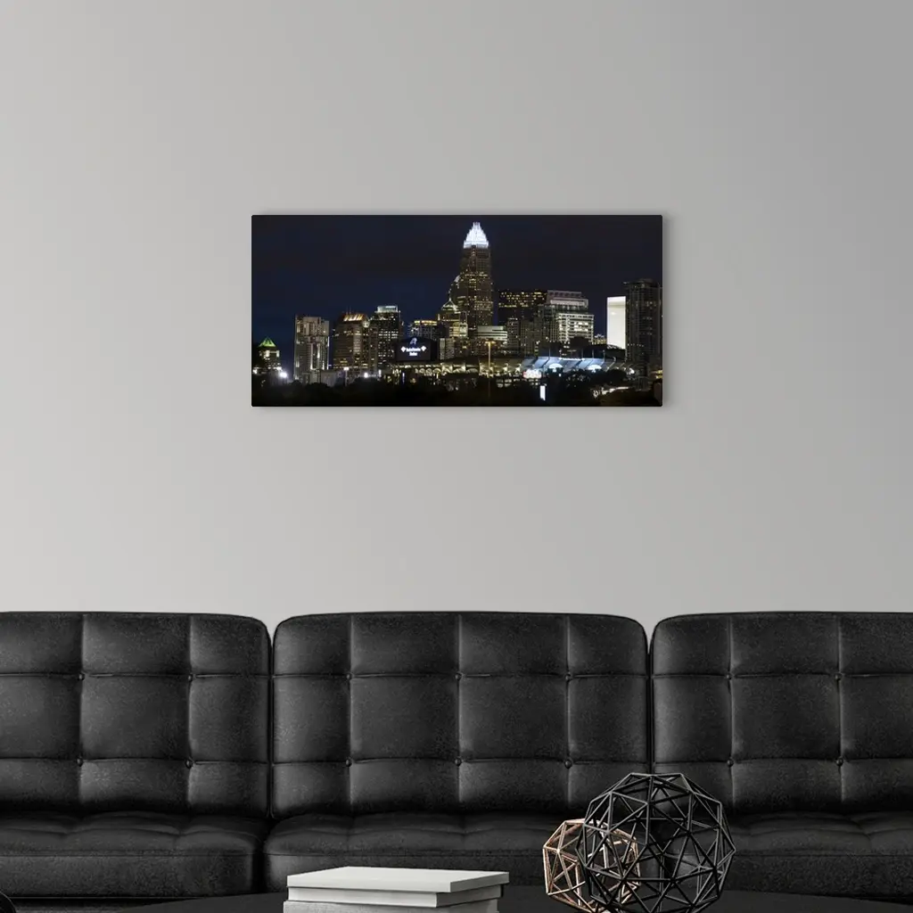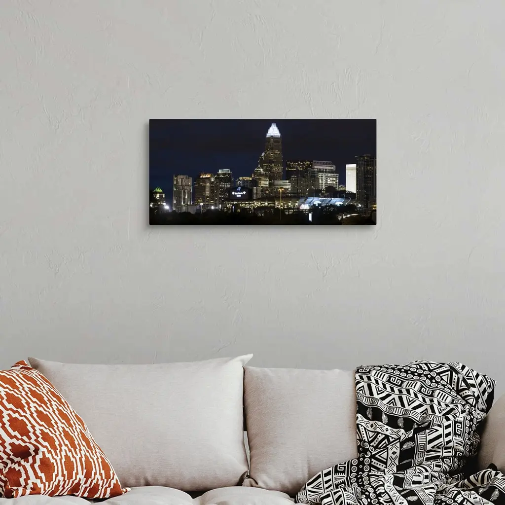 Horizontal image of the city of Charlotte, North Carolina at night.