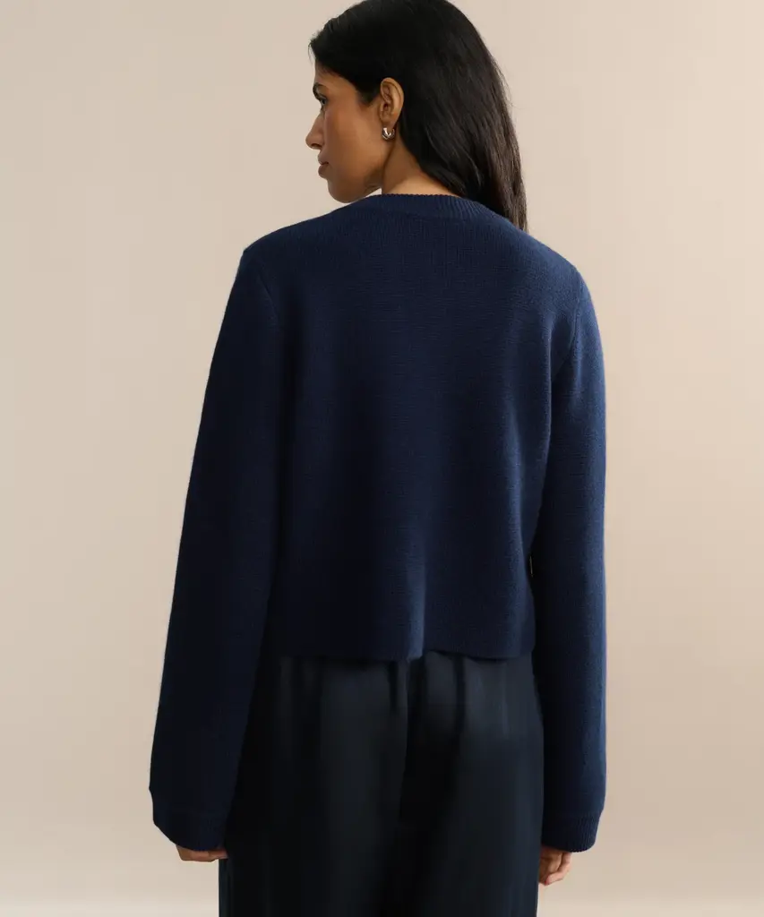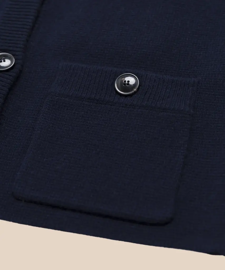 Charlotte Cardigan Navy Fashioned from the same fabric as our Cooper Cardigan, the Charlotte Cardigan features a straight sleeve, front pockets, and horn buttons for a fresh take on an everyday essential. Wear it with denim or a skirt for a versatile look that will transcend seasons.
