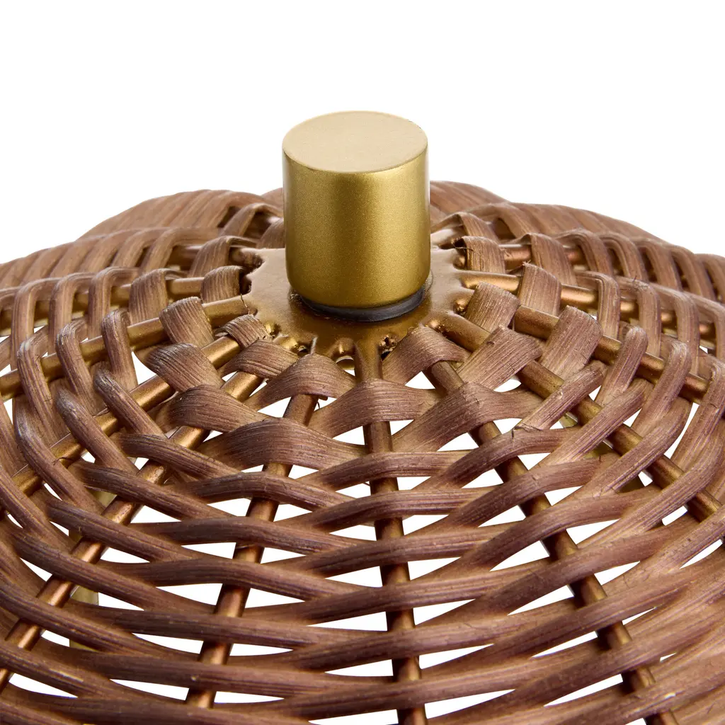 The charming Charlotte accent lamp is handwoven in India of natural rattan with a walnut finish and gold hardware. With a simplified base and scalloped-edge dome shade, it looks right at home in any coastal cottage or rustic farmhouse. A darling World Market exclusive, we imagine this textured decor adding a dash of stylish sophistication to any console table, desk, or nightstand.