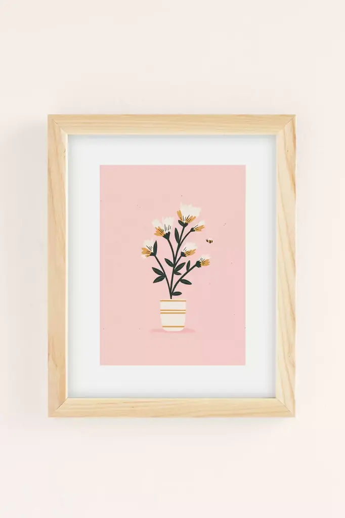 Cherish the happy buzz of bees seeking flowers with this art print featuring a sweet illustration by Charly Clements. Printed on archival paper made from cotton pressed in Italian mills, this high-quality art print is available in sizes and frames just right for your space. First select your frame (or go frameless), then select your size. **About the Frames** \- The exact width of each frame may vary slightly \- All frames are manufactured in the US \- Matte frames are durable poly \- Wood frames are recycled wood \- All are fitted with protective plexiglass \- Finished with wood moldings, archival backer and protective bumpers **Size** \- Available in multiple sizes \- Use the Size Guides to find the size that fits your space **Content + Care** \- Wipe clean \- Made in the USA