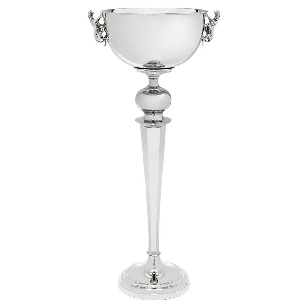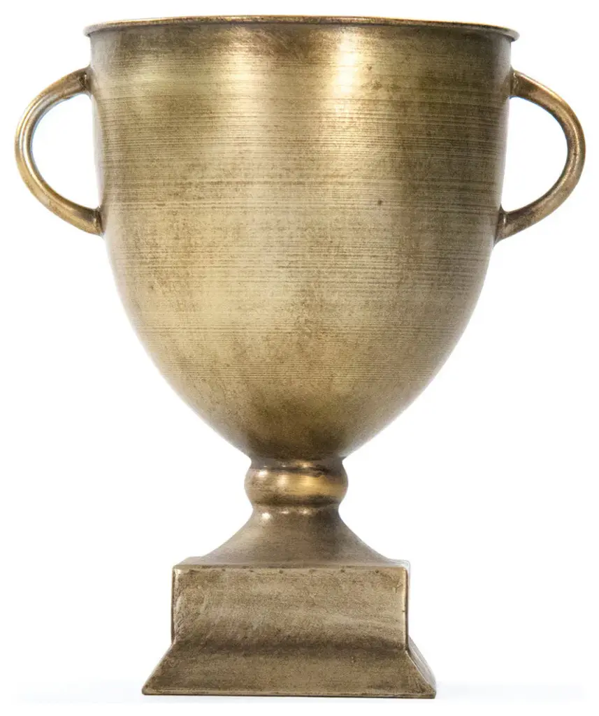 Add a unique accent piece to your home using the Charmander Trophy. This distressed brass trophy has small curved handles and a simple square base. Display it on a mantel, bookcase, or entryway table for a bold, elegant look.