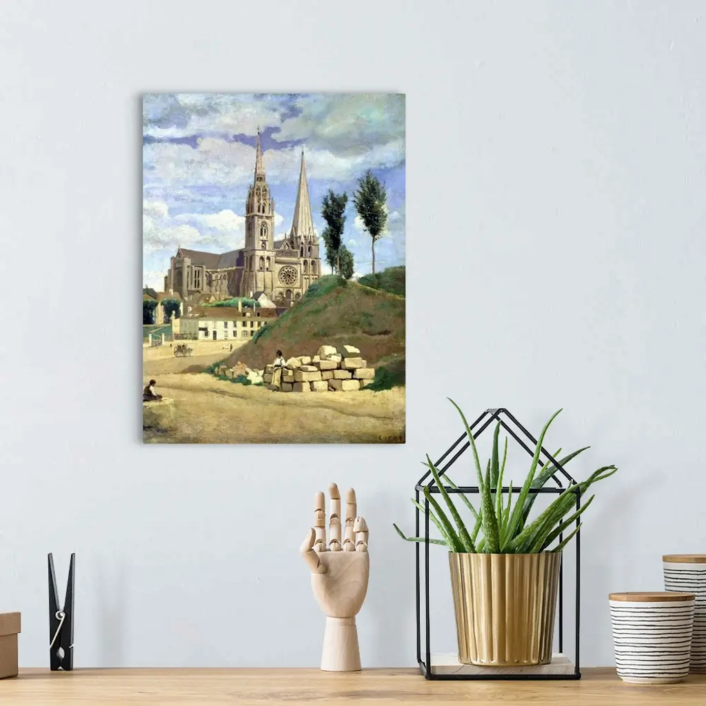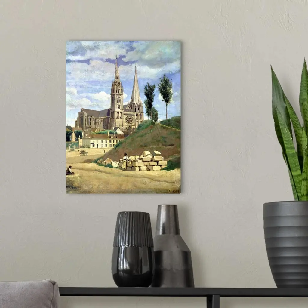 XIR6280 Chartres Cathedral, 1830 (oil on canvas) by Corot, Jean Baptiste Camille (1796-1875); 64x51.5 cm; Louvre, Paris, France; Giraudon; French, out of copyright
