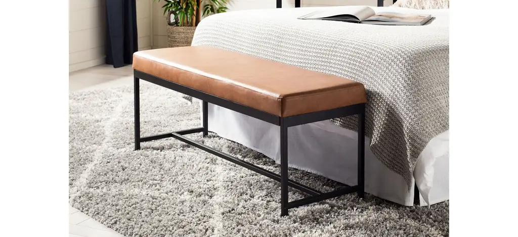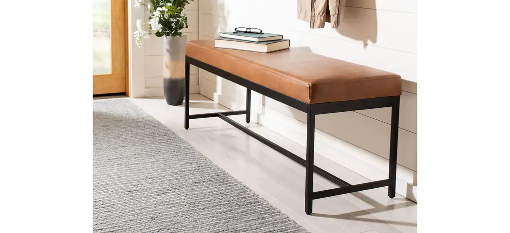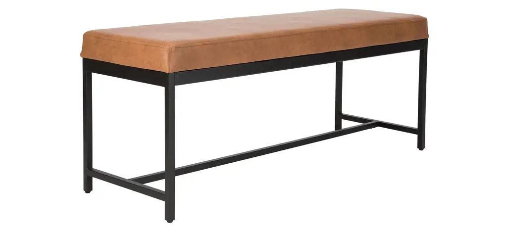Designed for maximum versatility, this stylish Chase Faux Leather Bench is a perfect upgrade to any living room. Its generous rich brown upholstery and sleek black metal legs complement any dcor. Use as extra seating or for a tabletop for impromptu snacks.