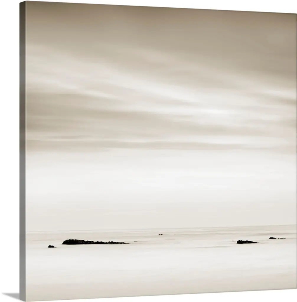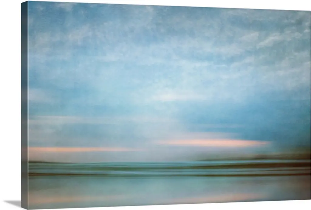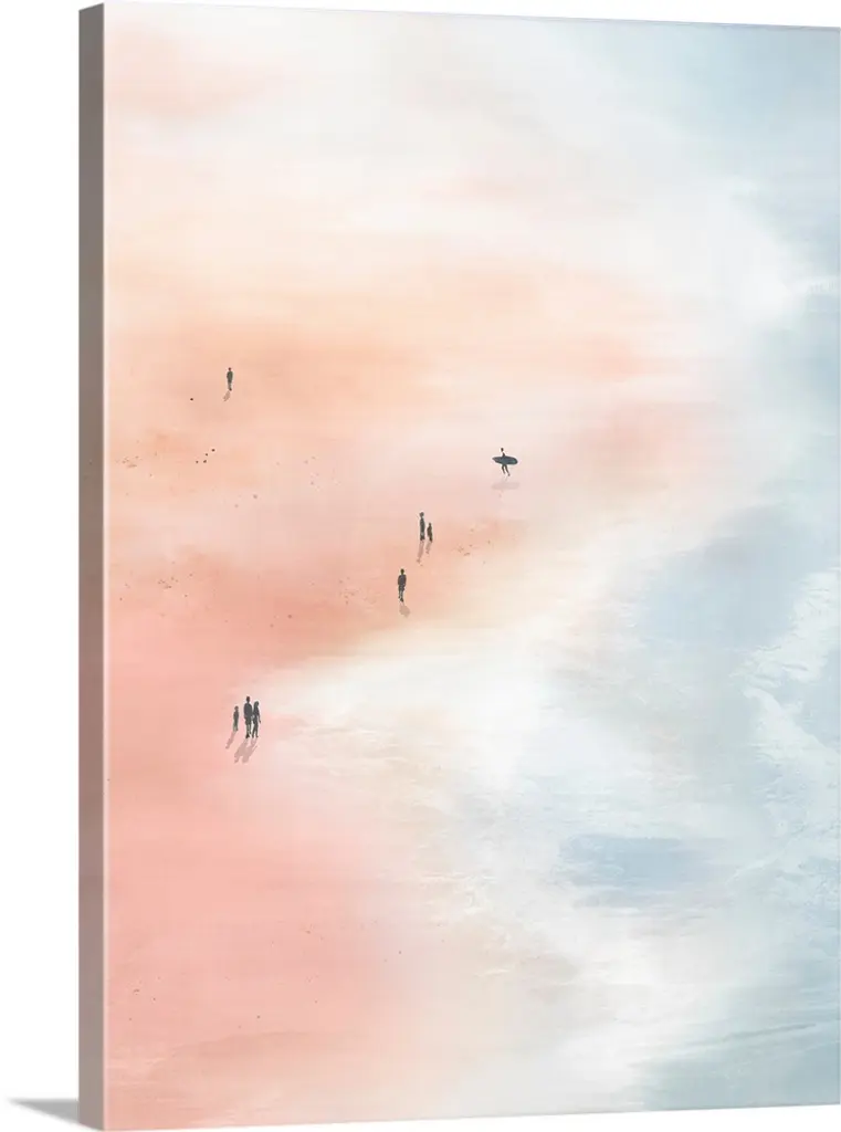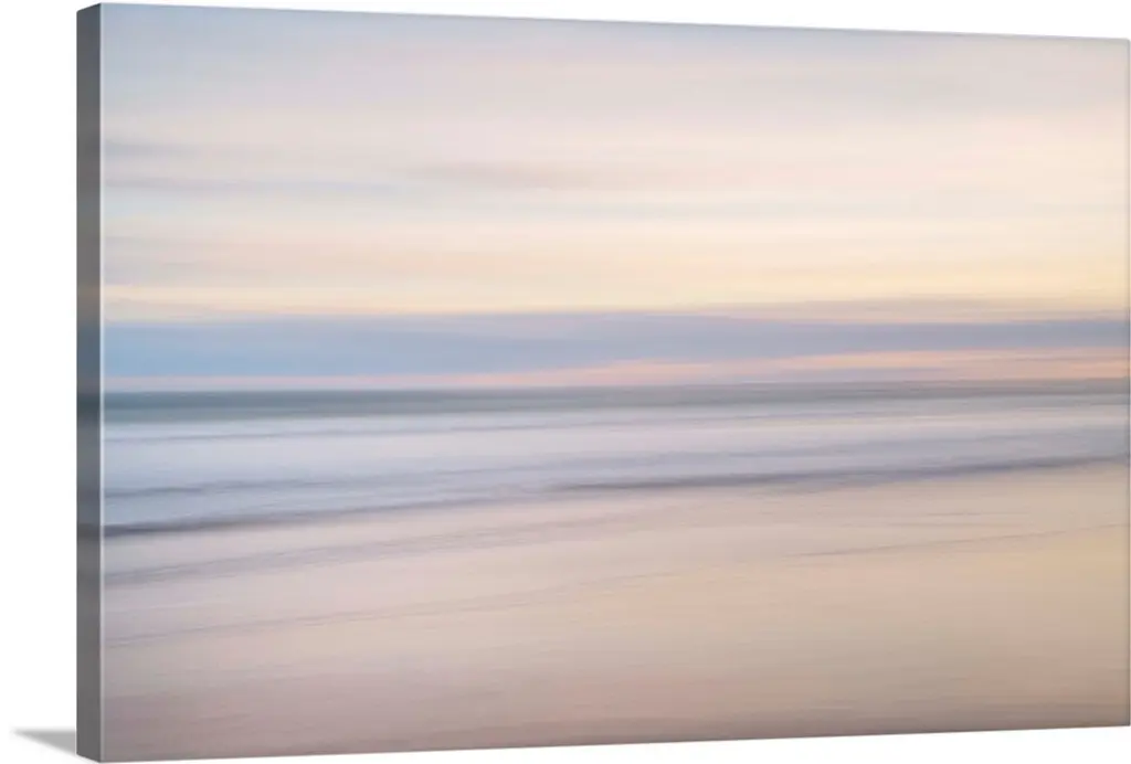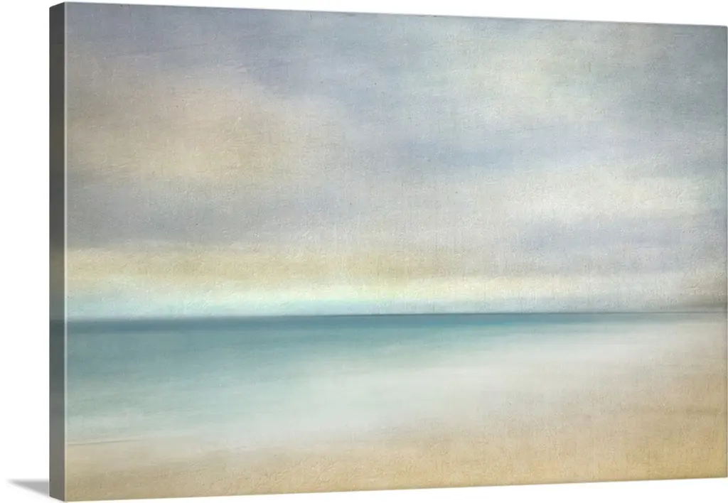 A vintage seaside holiday vacation dream image of two children playing on a beach in blurry soft focus.