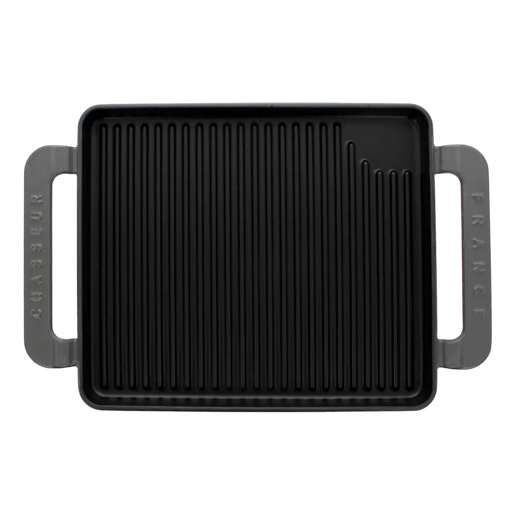 Chasseur's cast iron rectangular grill pan is perfect for grilling and searing steaks, delicious burgers, shellfish and roasted vegetables. This grill is constructed of thick cast iron to maintain its temperature and evenly distribute the heat for optimal cooking conditions. While cooking, ridges allow excess fat and grease to drain. The exterior is treated with double layers of enamel to ensure many years of use.