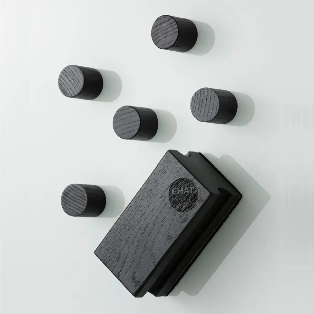 Wooden magnetic eraser, black stained or natural oiled ash. All erasers come with 2 extra felt pads.