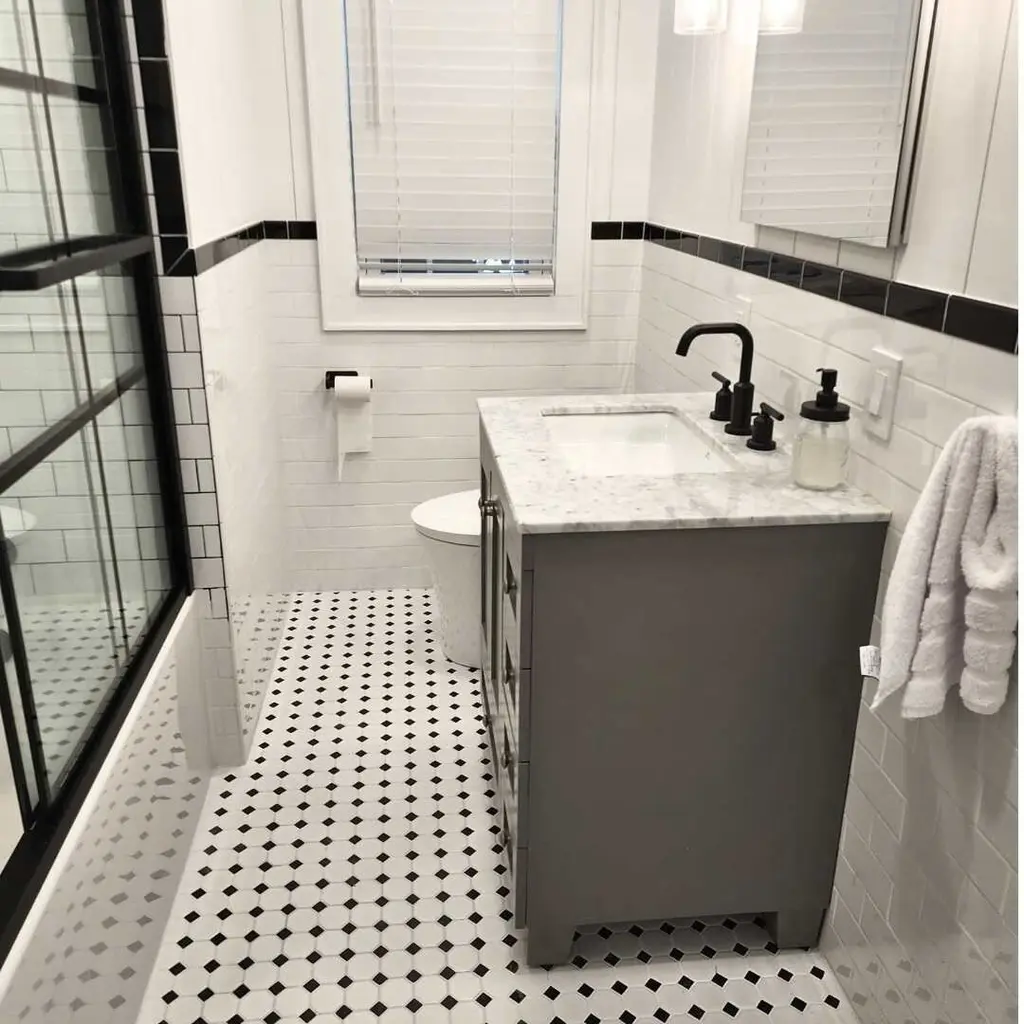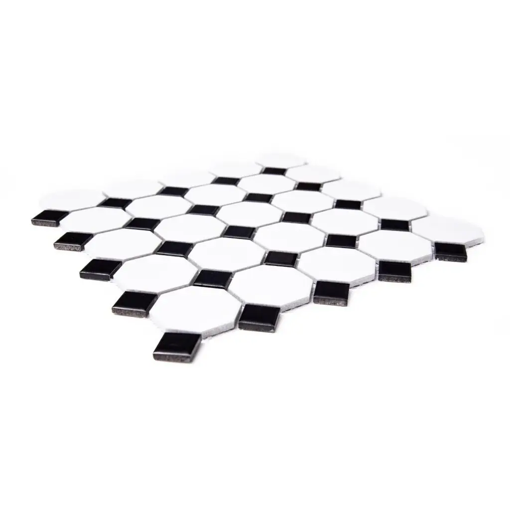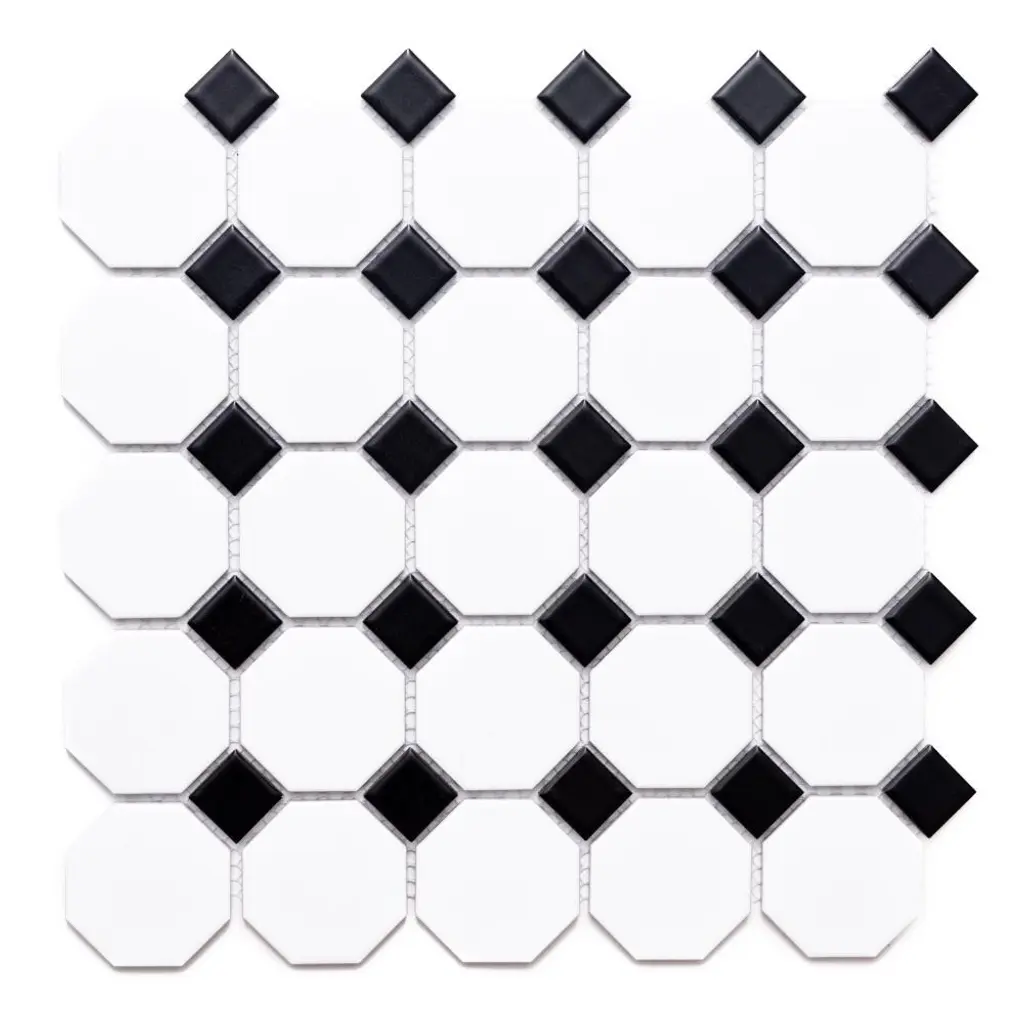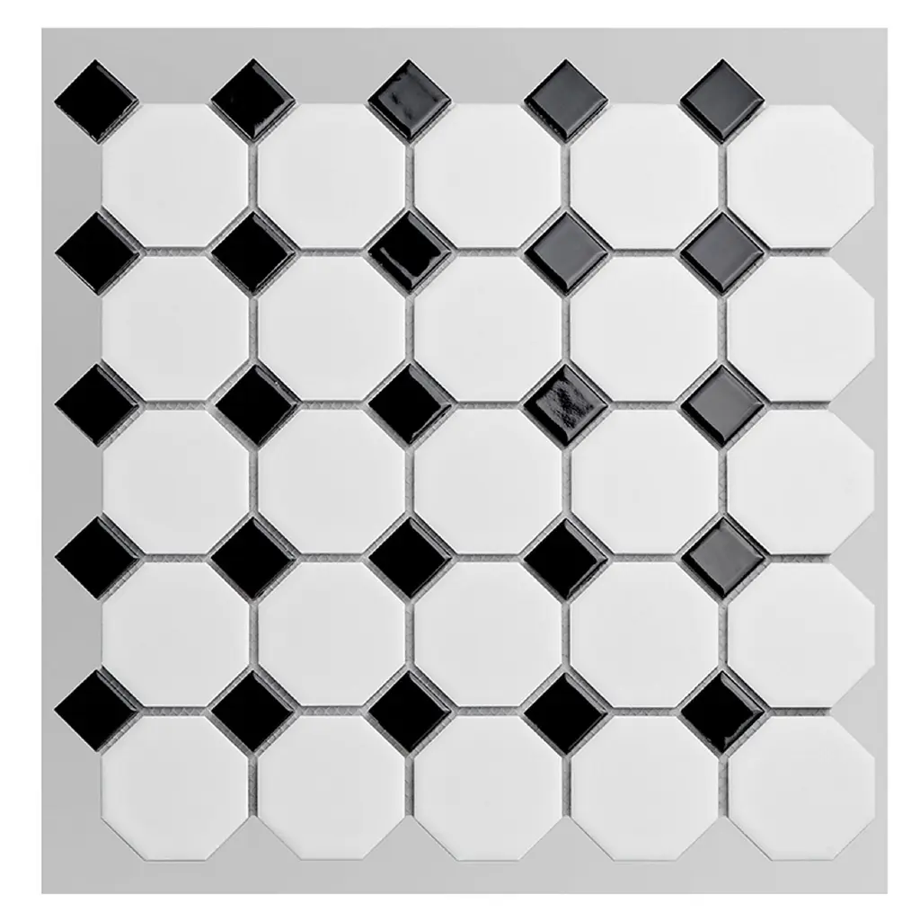 Check 1" X 1" Black/ White Porcelain Mosaic Floor And Backsplash Wall Tile - 1 Sheet (1 Sq. Ft.)