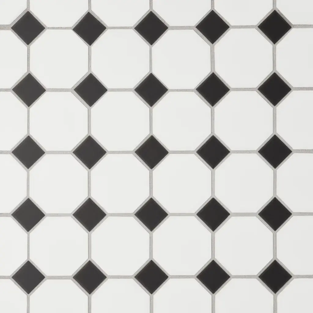 Add a classic and timeless mosaic tile to your design with our mixed check black & white mosaic. A beautiful addition to the traditional look of checkered tiling, our Check Porcelain Mosaic is the perfect tile for home designers who enjoy classic styles and versatile color schemes. This is an interesting pattern in two neutral colors--it'll never go out of style! These mesh-backed tiles are perfect for backsplashes, bathrooms, showers, kitchens, floors, and walls. Impervious and waterproof, they're ideal for indoor use in both residential and commercial settings. Easy to install, clean, and maintain, these pressed, straight-edge tiles offer lasting durability and style for any room. FEATURES:DIMENSIONS: