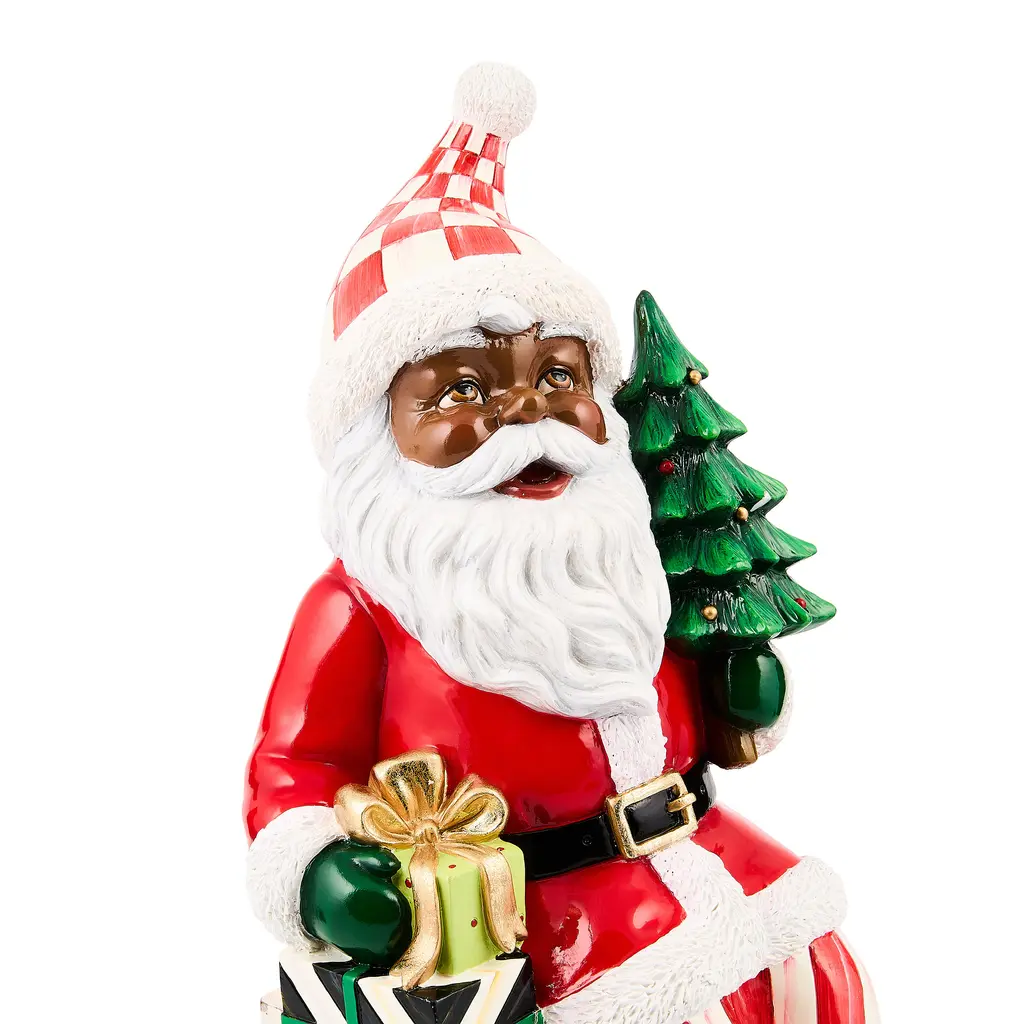 Add MacKenzie-Childs signature charm to your Christmas season with the Check It Out Black Santa Ledge Sitter. Santa Claus himself looks ready to drop into your home bearing gifts aplenty. The perfect addition to your mantel alongside your stockings.