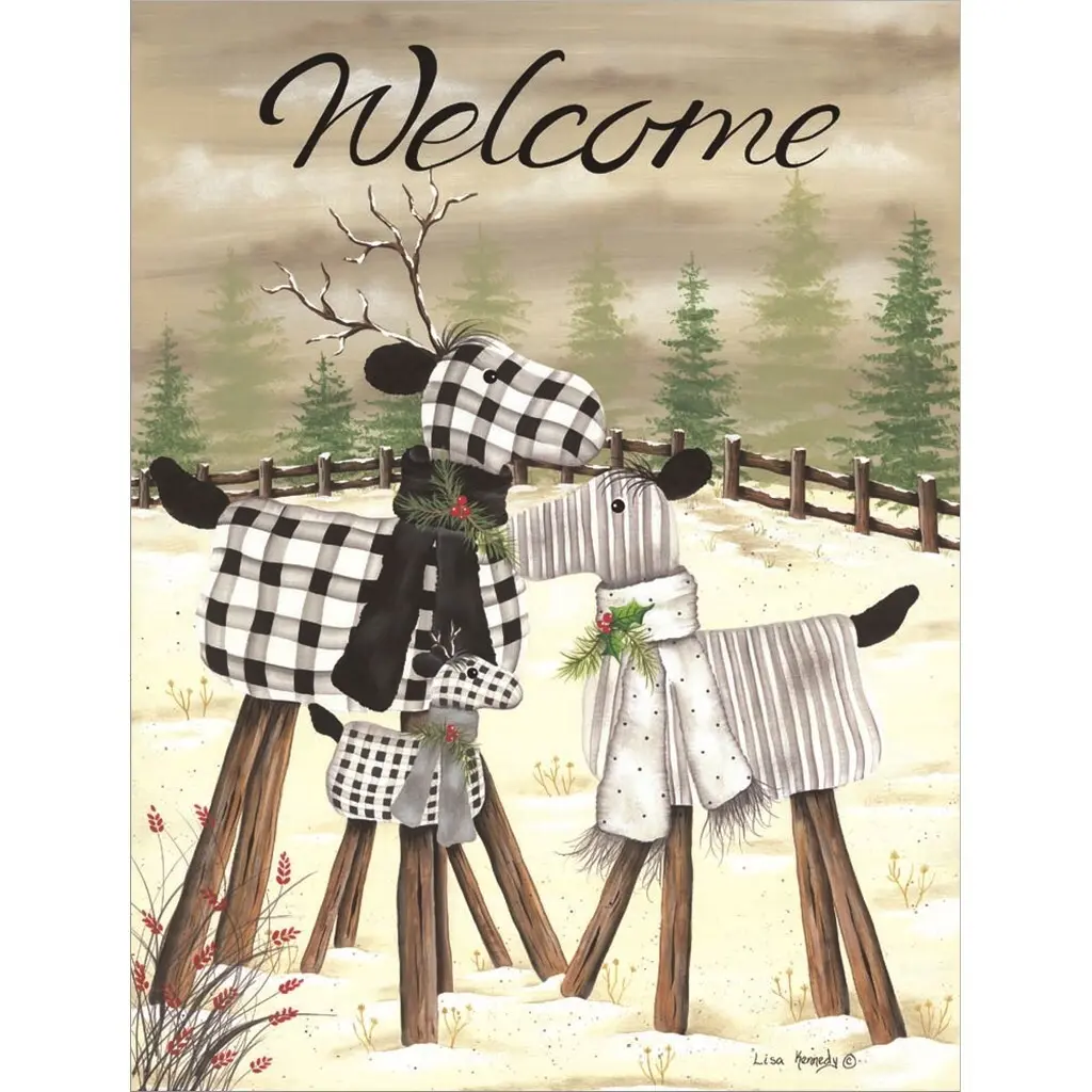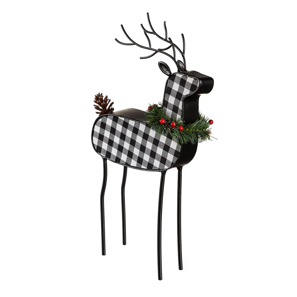 Full of texture and fun details, this deer family set will become one of your favorite holiday decorating pieces. With their metal bodies, checkered pattern, textured wreaths and mini pine cone tails, these deer will add Christmas spirit wherever you place them. Crafted of durable metal frames with plastic details, these deer are lightweight décor pieces that can be placed on any table, shelf, counter and more. Display them together or separately for your own unique look. Thanks to their durable designs, you can also display them in a covered area outside. They also make a wonderful gift. Gift this set to anyone who loves all things Christmas or could use some holiday cheer this season.