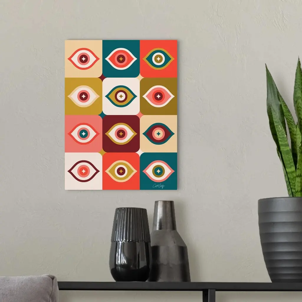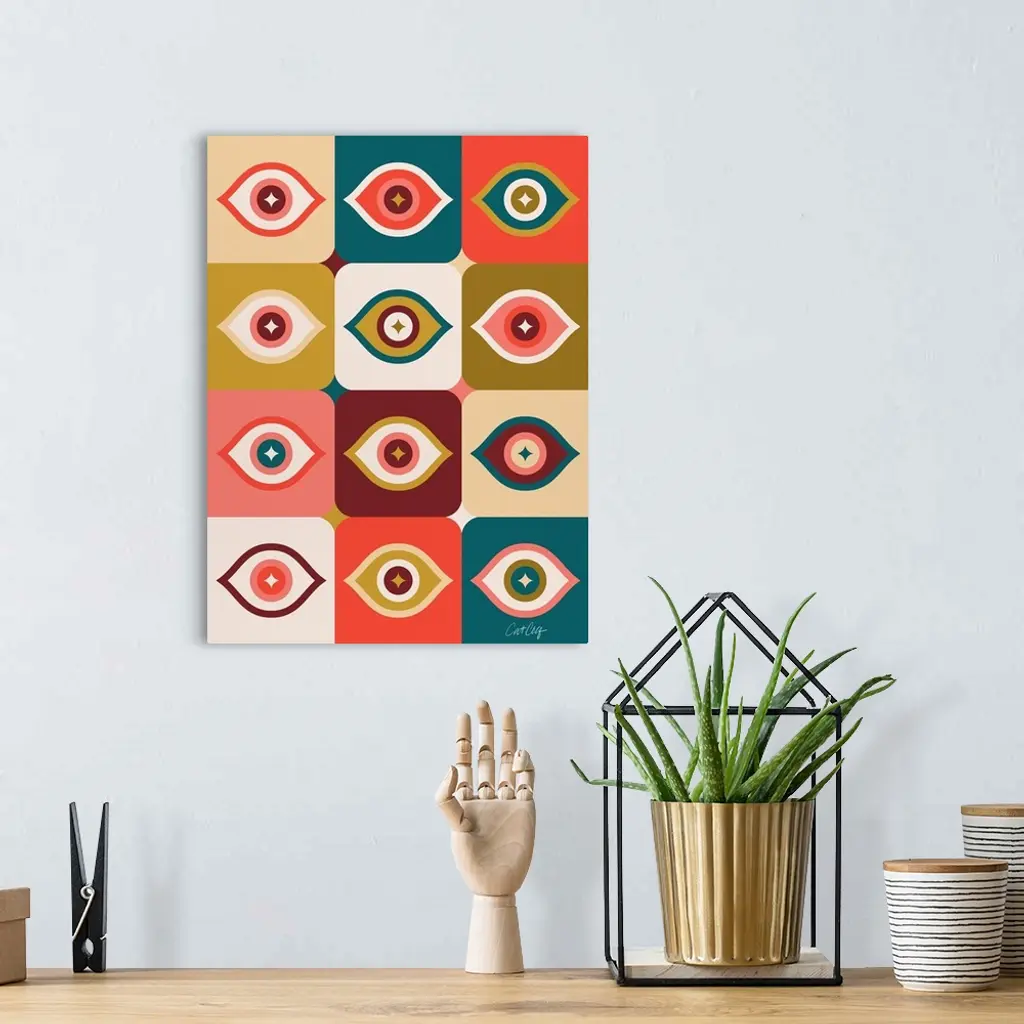 Checkered Retro Eyes - Cherry Teal wall art for home and office decor. Discover canvas art prints, photos, mural, big canvas art and framed wall art in GreatBigCanvas.com's varied collections.