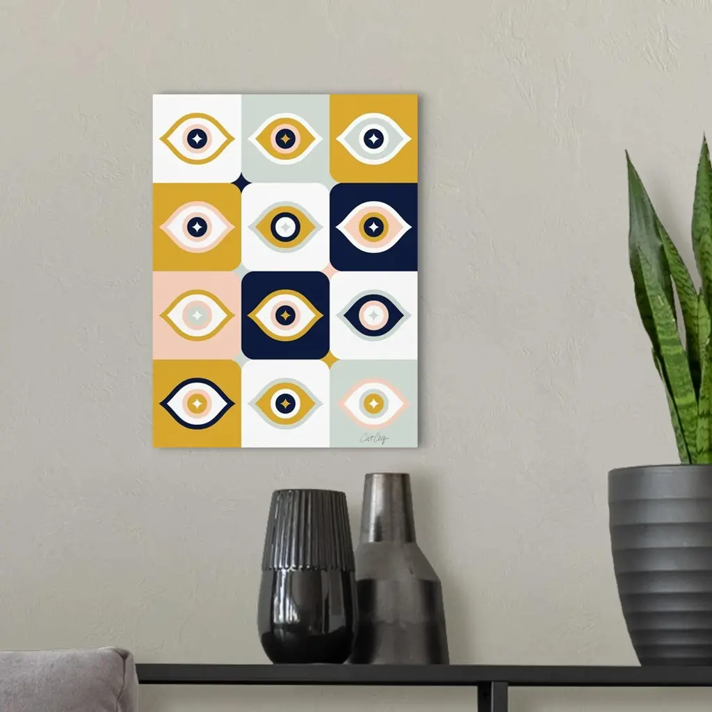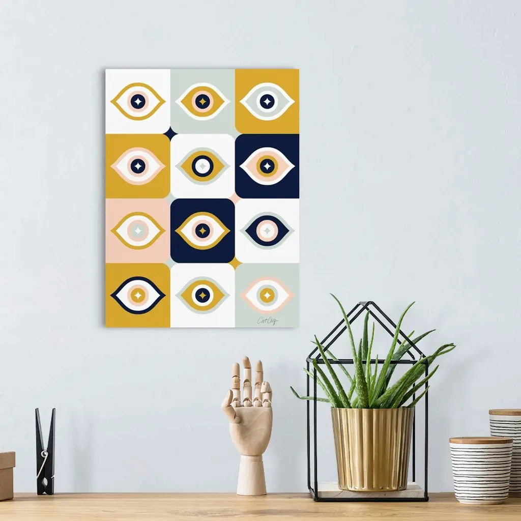 Checkered Retro Eyes - Orchre Mint Navy wall art for home and office decor. Discover canvas art prints, photos, mural, big canvas art and framed wall art in GreatBigCanvas.com's varied collections.