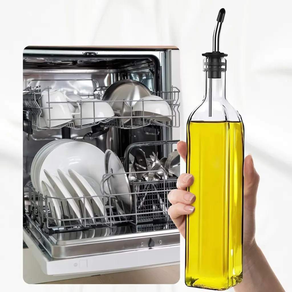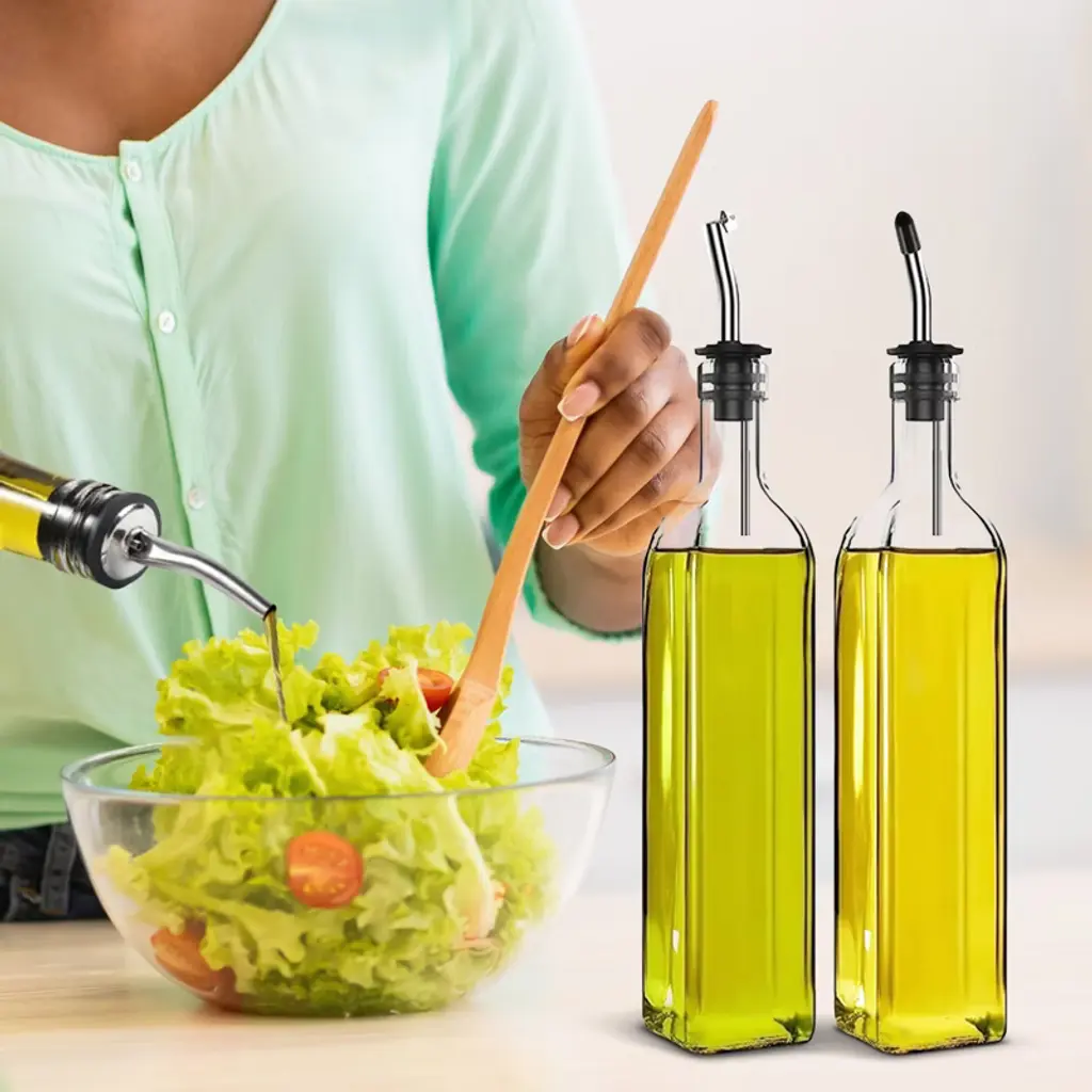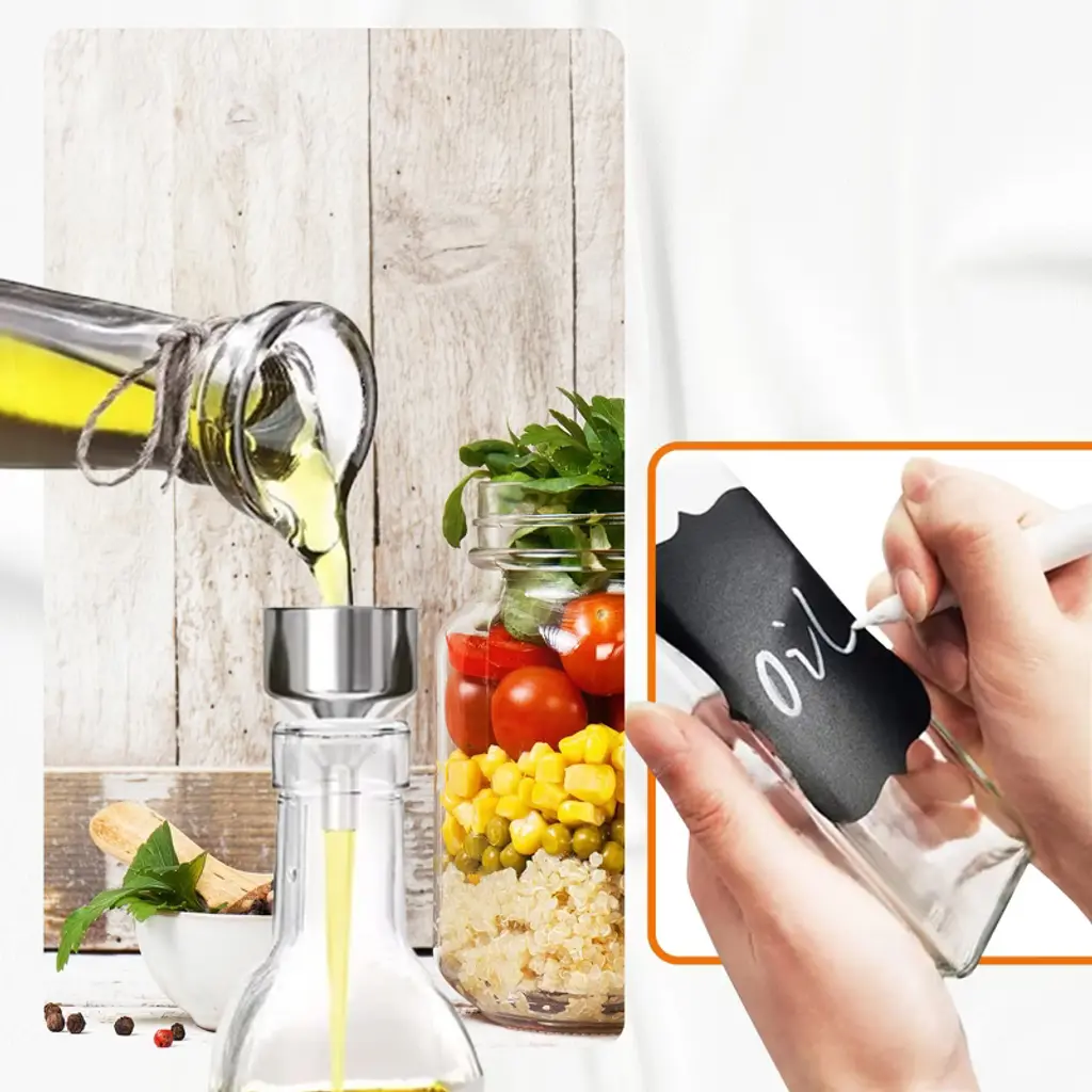 Upgrade your kitchen setup with the Cheer Collection 2-Pack Glass Olive Oil Dispenser Set, each bottle holding 17oz (500ml) and measuring approximately 12.5" tall by 2" wide and deep. This complete set includes two clear lead-free glass bottles, two stainless steel pour spouts (flap cap and dust cap), a funnel, cleaning brush, and four waterproof labels—everything you need for convenient, mess-free dispensing. The non-slip base ensures stable placement while the precision pour spouts with air vents offer smooth flow without drips or spills. Easily refill using the wide funnel, and label your favorite oils, dressings, or vinegar for organized access. Dishwasher-safe and stylish, these dispensers are perfect for everyday cooking, salad prep, or elegant table use