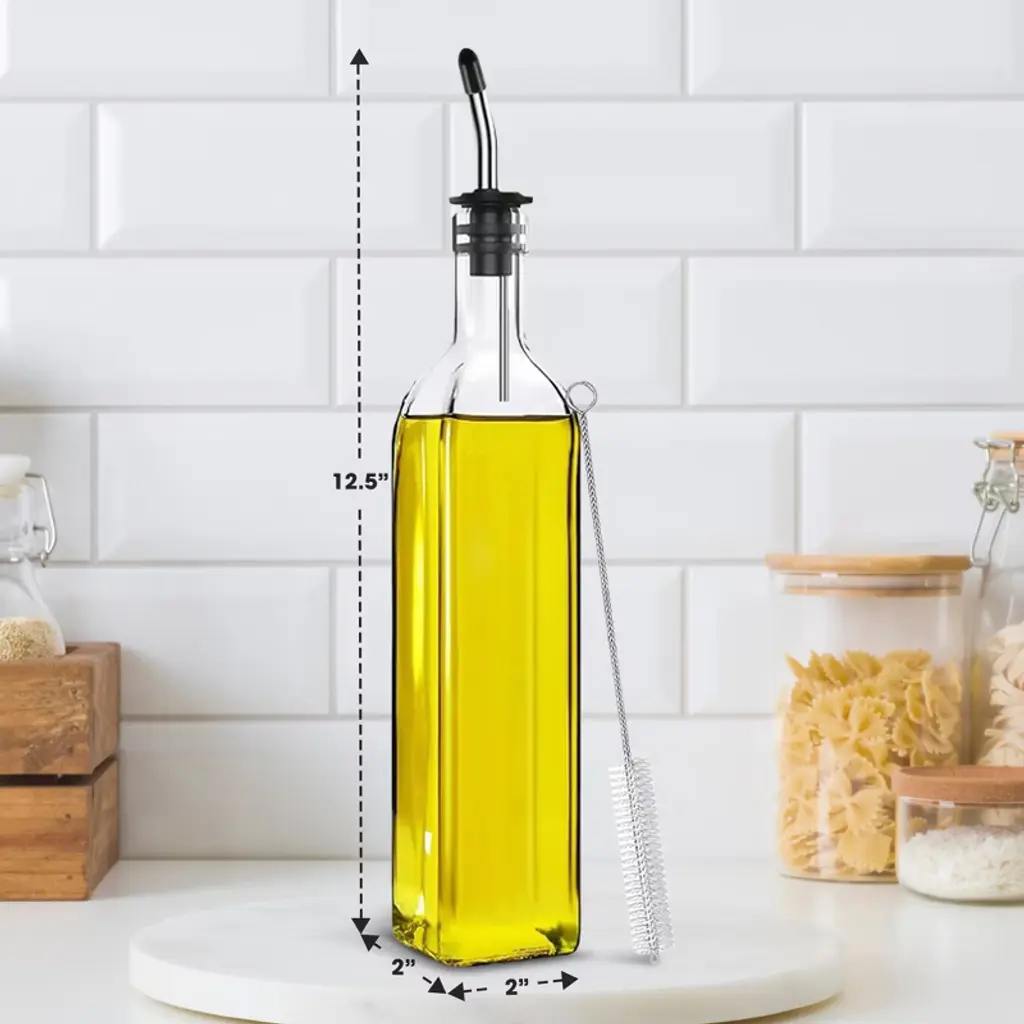 Cheer Collection 2-pack Glass Olive Oil Dispensers With Funnel, Pour Spouts, Labels & Brush – 17oz Each Bottle