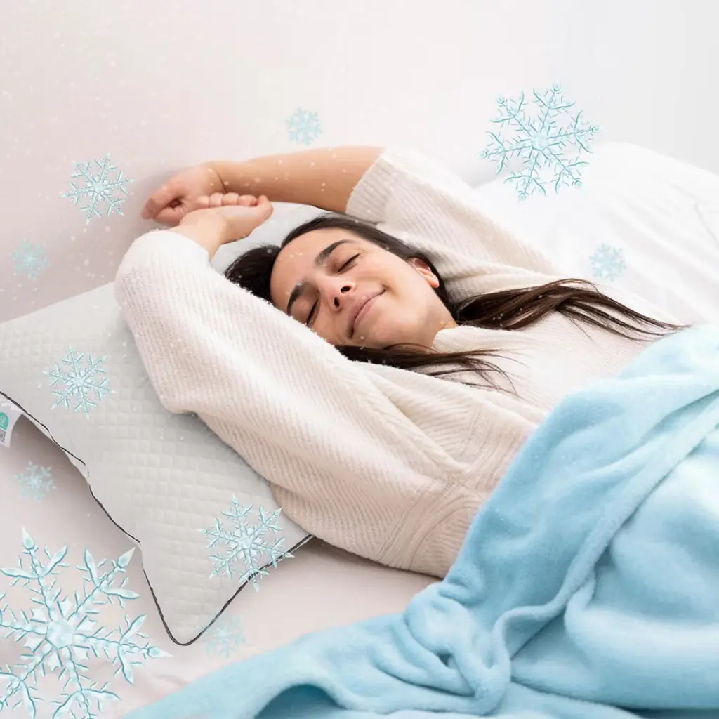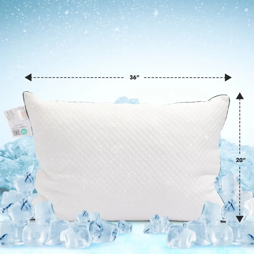 Discover the ultimate in refreshing sleep with the Cheer Collection Cooling Ice Pillow, designed for cool comfort every night. Crafted with a plush blend of luxurious fibers and shredded foam, this pillow offers soft, overstuffed support while maintaining its shape. The innovative ice fiber layer helps regulate temperature, wicking away heat to keep you cool and relaxed until morning. A thin foam insert enhances airflow, making it perfect for hot sleepers who struggle with night sweats. The silky, breathable cover adds an extra layer of softness and is easily removable with a zipper for simple machine washing. Available in Standard (20" x 28") and King (20" x 36") sizes, this pillow provides versatile comfort for all sleeping positions—side, back, or stomach. Hypoallergenic and durable, it’s ideal for both home and travel, offering a cool, refreshing rest every night