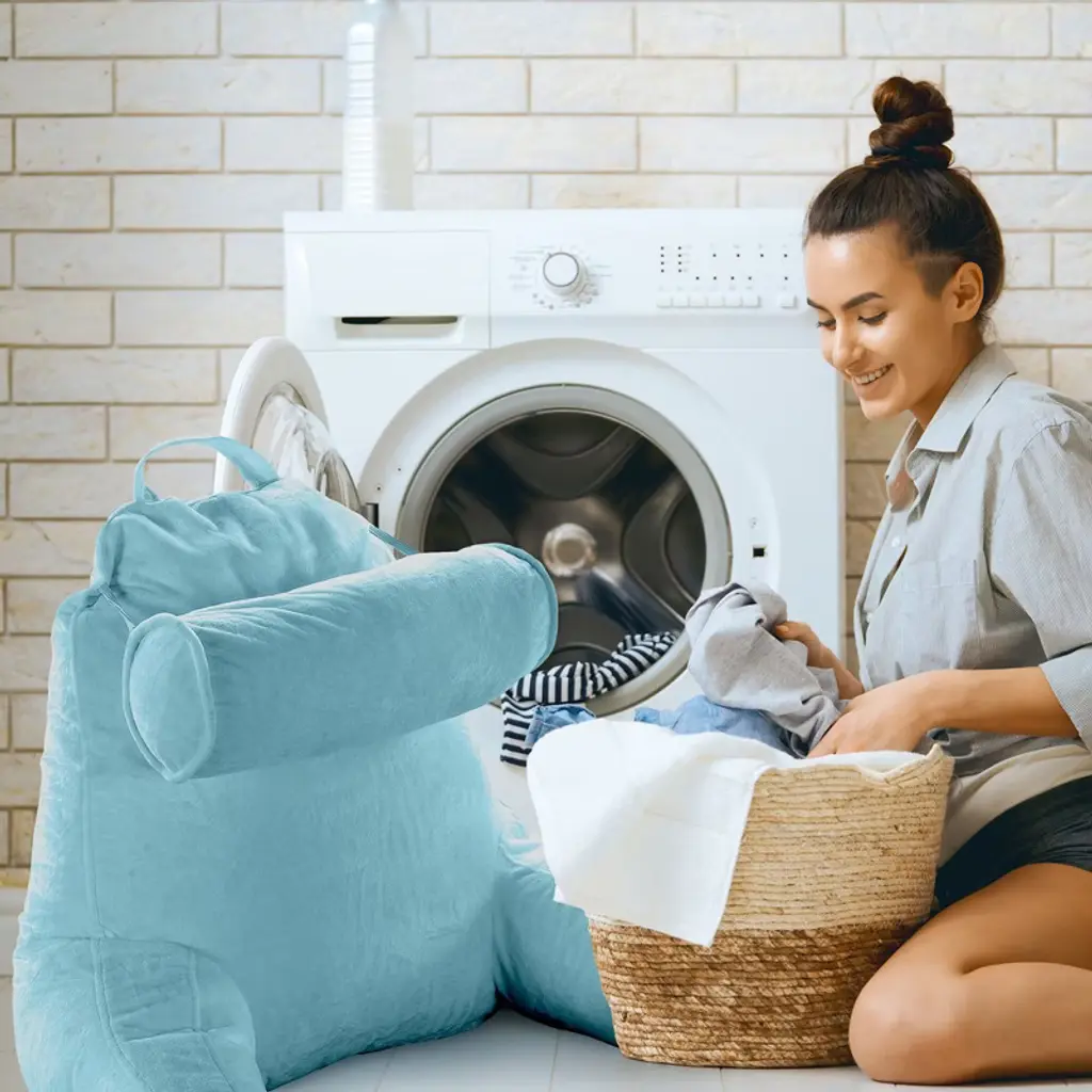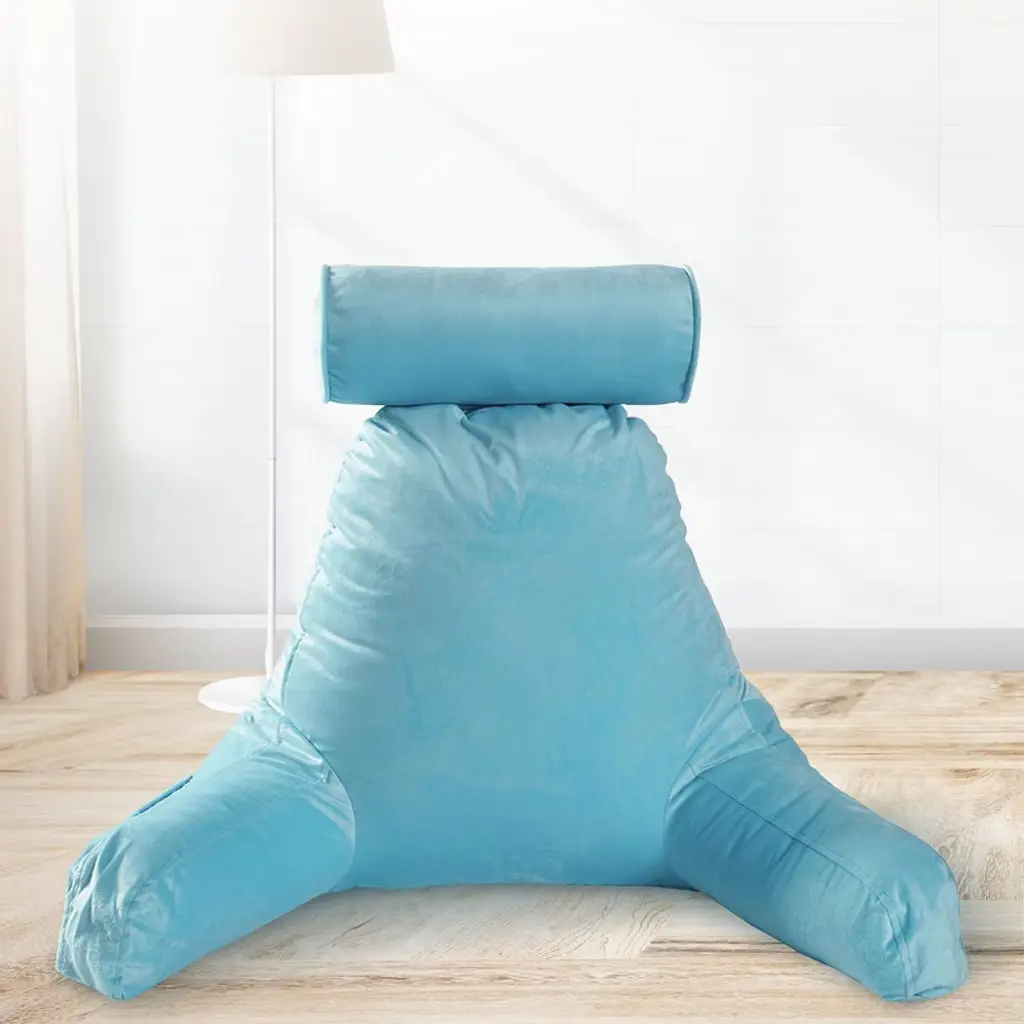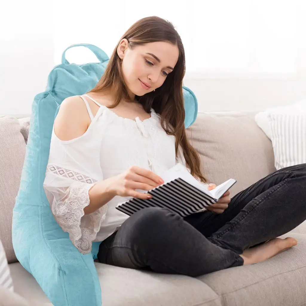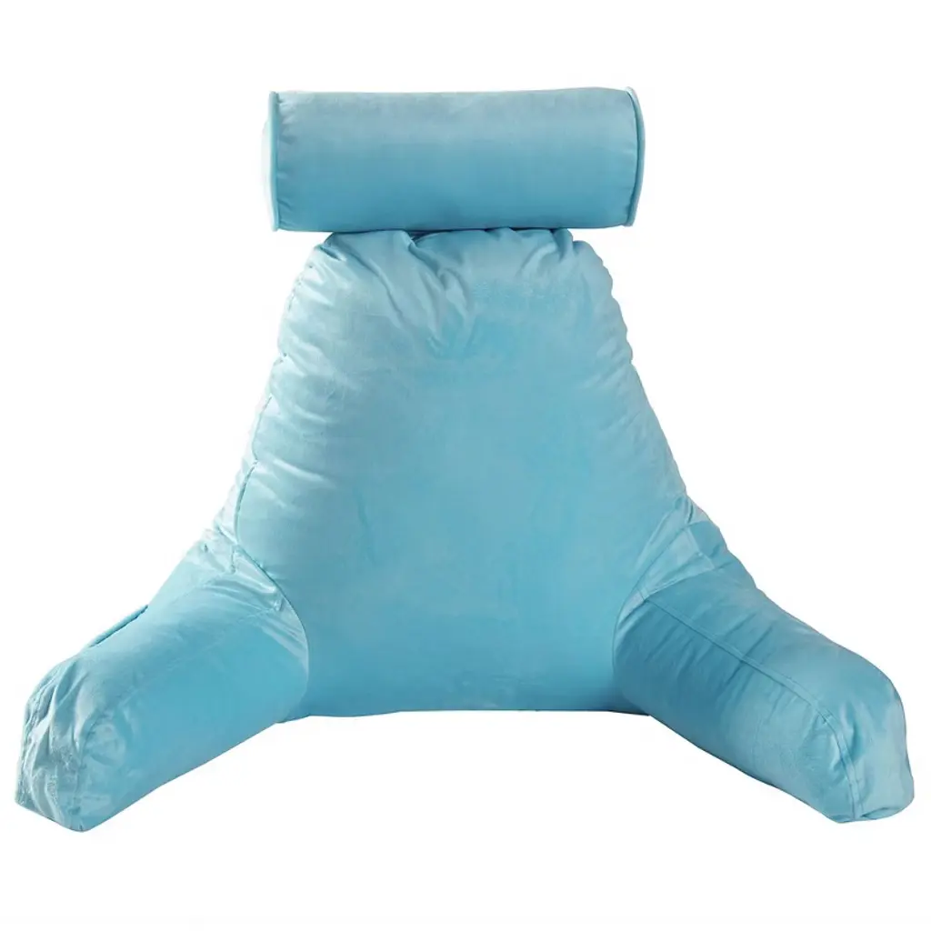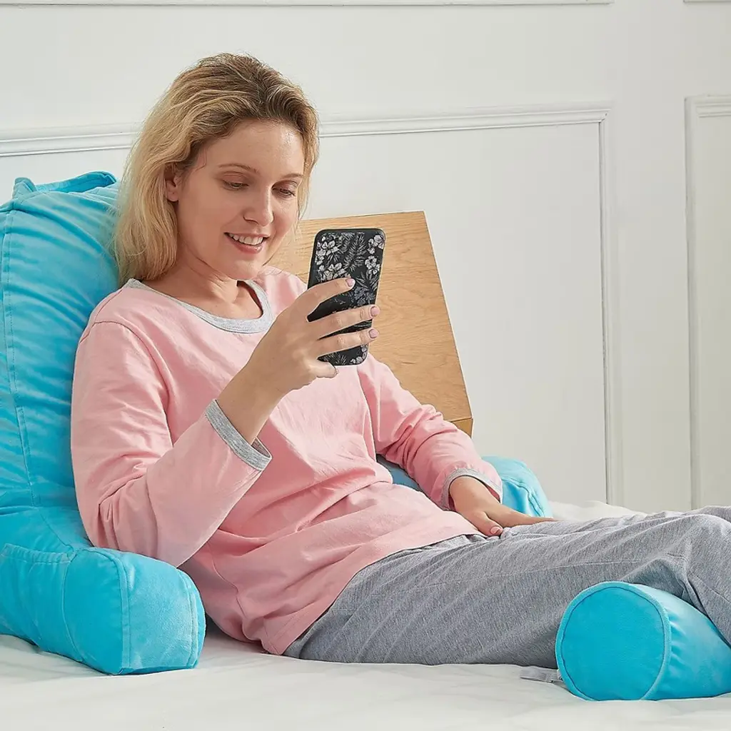 Experience the pinnacle of comfort and convenience with the Cheer Collection TV & Reading Pillow in a sophisticated sky blue color. Designed for those who cherish their leisure time or need extended periods of bed rest, this pillow is a game-changer. Constructed with soft sky blue velour fabric and generously filled with firm hollow fiber, every moment spent reading, gaming, or simply lounging becomes a luxurious affair. The ergonomic design ensures your back, arms, neck, and head receive the proper support they need, with the detachable bolster adding an extra layer of comfort for your neck and head. For those nights when you’re engrossed in a book or binge-watching a series, this pillow ensures your posture remains optimal, reducing undue pressure on your back. The inclusion of a side pocket means your remote or phone is always within arm's reach. Perfect for students, especially in dorm rooms, where extended study sessions are common. The lightweight design, combined with a sturdy top handle, ensures you can take this pillow with you, be it to a friend's dorm or back home during breaks. For those special moments, like pregnancy or recovery post-surgery, the Cheer Collection pillow shines by providing much-needed comfort and support. Maintenance is a breeze with the removable zippered cover that's machine washable. And, as a heads up, your pillow is compressed for shipping. Choose the Cheer Collection Reading Pillow for a relaxation experience like no other. Comfort, convenience, and class all rolled into one.