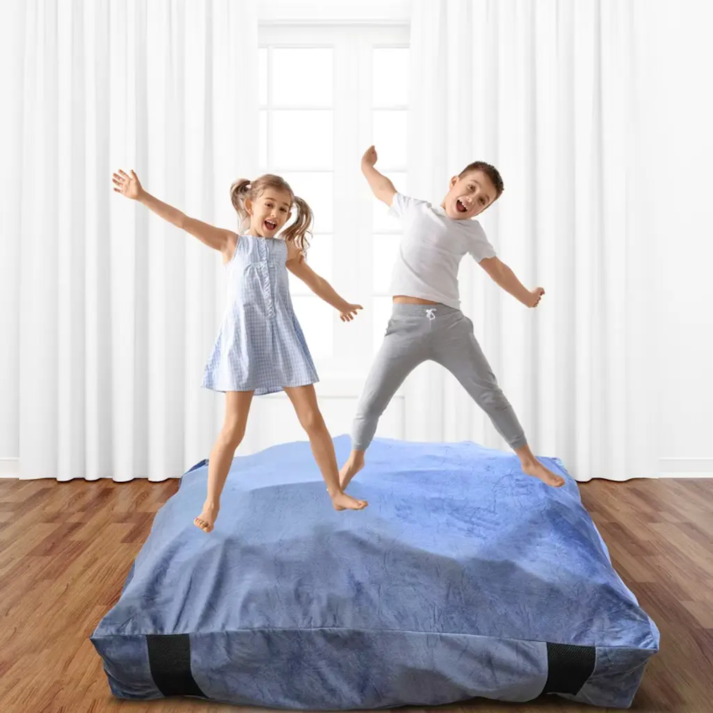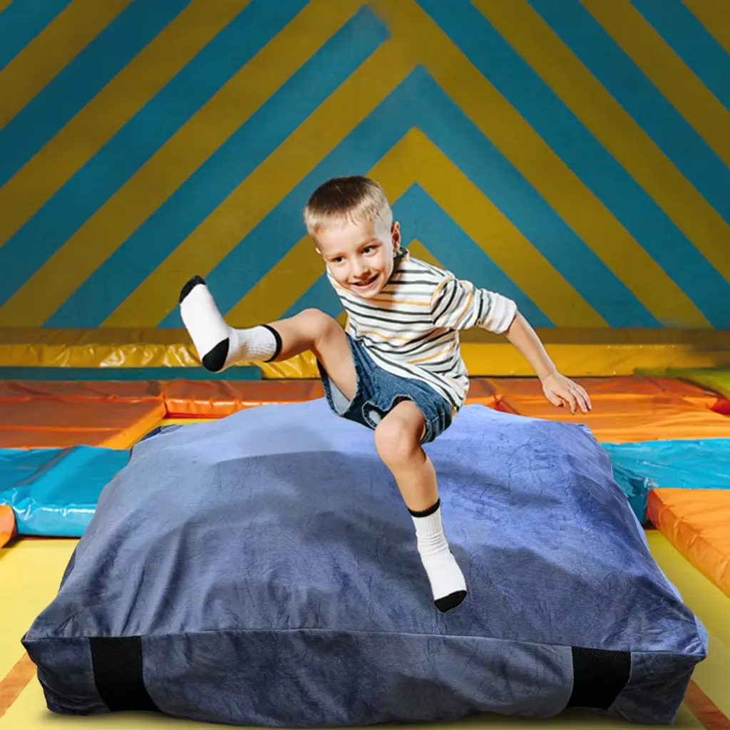 Our sensory crash pad features innovative design elements that set it apart. Infused with high-density foam blocks, this pad ensures a cushioned yet supportive surface for various activities. The foam blocks promote even weight distribution, enhancing the sensory experience for all ages. The four strategically placed vents on the sides allow the pad to compress, releasing air for dynamic sensory input when your child jumps or falls onto it. The heavy-duty zipper ensures the foam blocks remain securely in place, offering peace of mind during play. Measuring a generous 60" x 60" Inches, this crash pad offers ample space for kids and adults to enjoy safe and engaging sensory activities. The plush and soft cover creates a secure and gentle space for sensory experiences, making it perfect for reading, relaxing, and playful exploration. Constructed with high-quality materials, this crash pad is built to withstand the test of time, making it a reliable long-term investment. Cleaning is a breeze with the removable and machine-washable cover. The inner cover features a secure zip lock, keeping the foam blocks safely contained while being easily wiped clean for quick maintenance. Whether it's used as a landing zone for safe play, a cozy bean bag for reading and lounging, or a space for sensory exploration, the Cheer Collection Foam-Filled Sensory Crash Pad stands as a versatile and enjoyable accessory. It promotes engagement, relaxation, and sensory stimulation, catering to both kids and adults seeking comfort and fun.