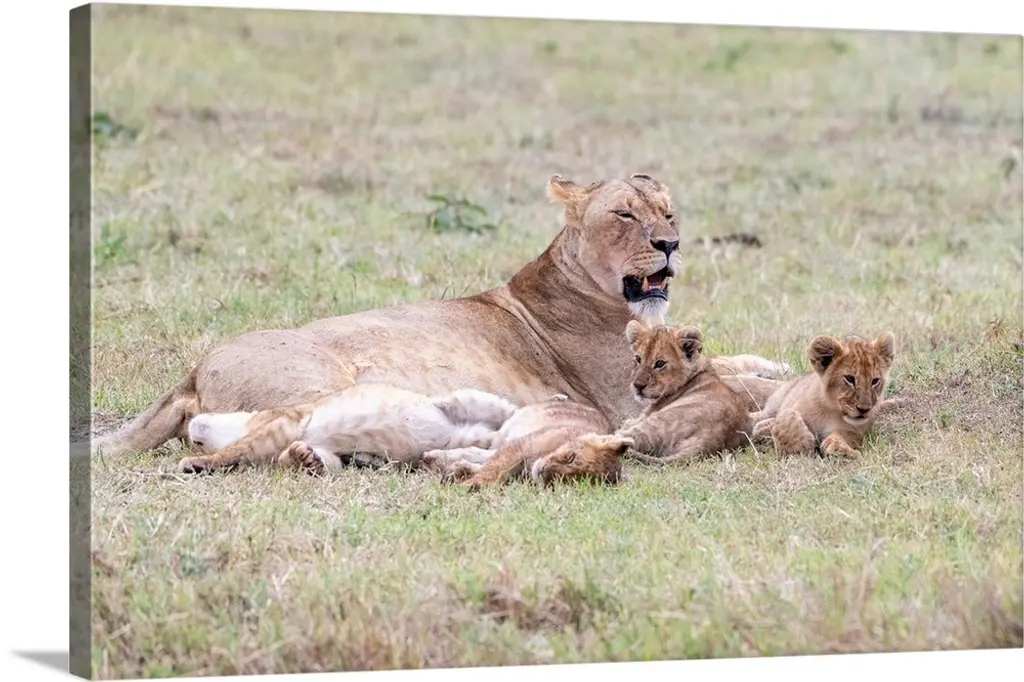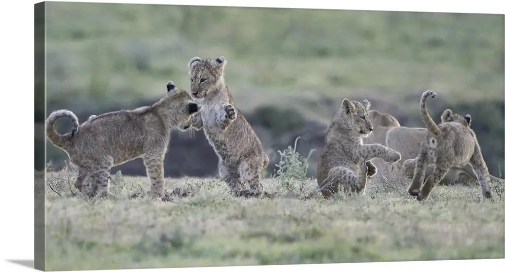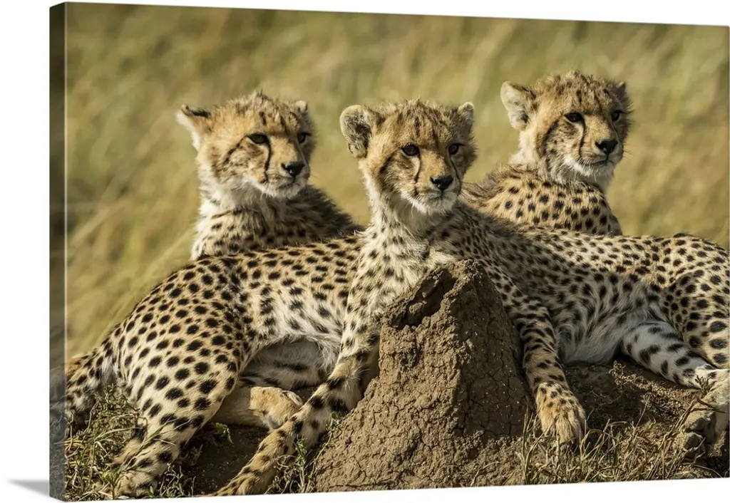 Cheetah Cub Sits Squeezed Between Others In Maasai Mara National Reserve, Narok, Kenya