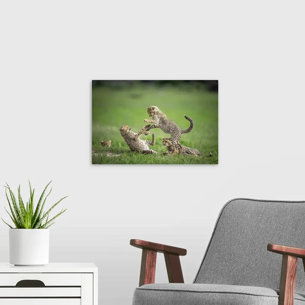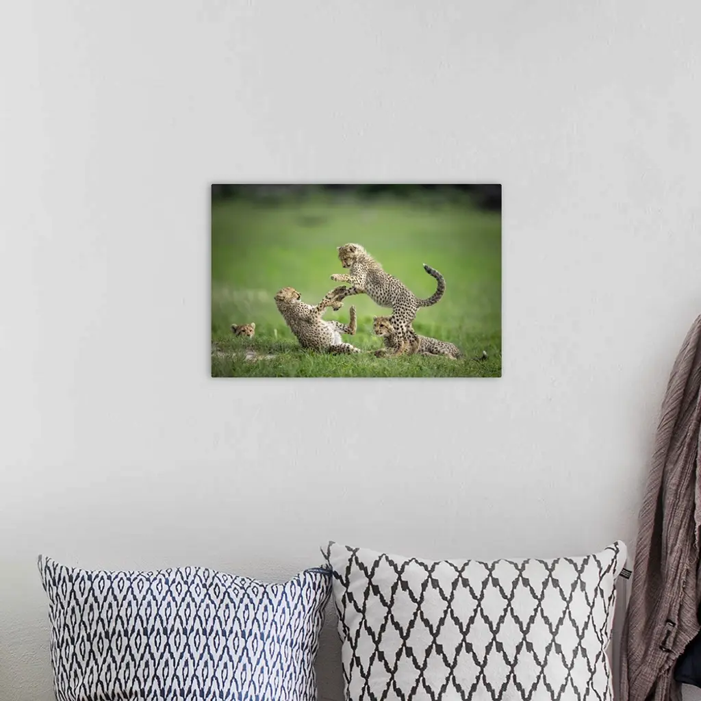 Cheetah Cubs Playing, Okavango Delta, Botswana