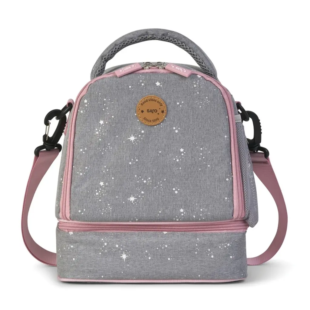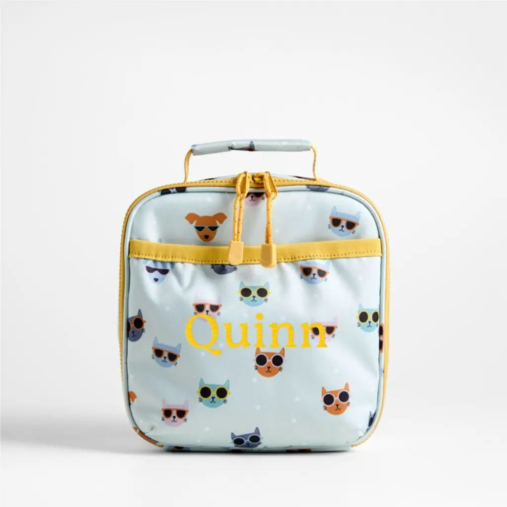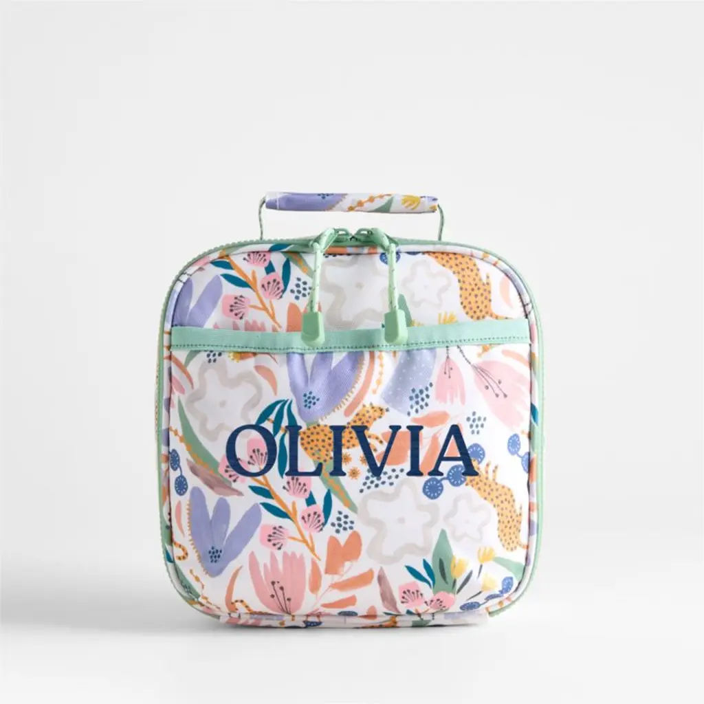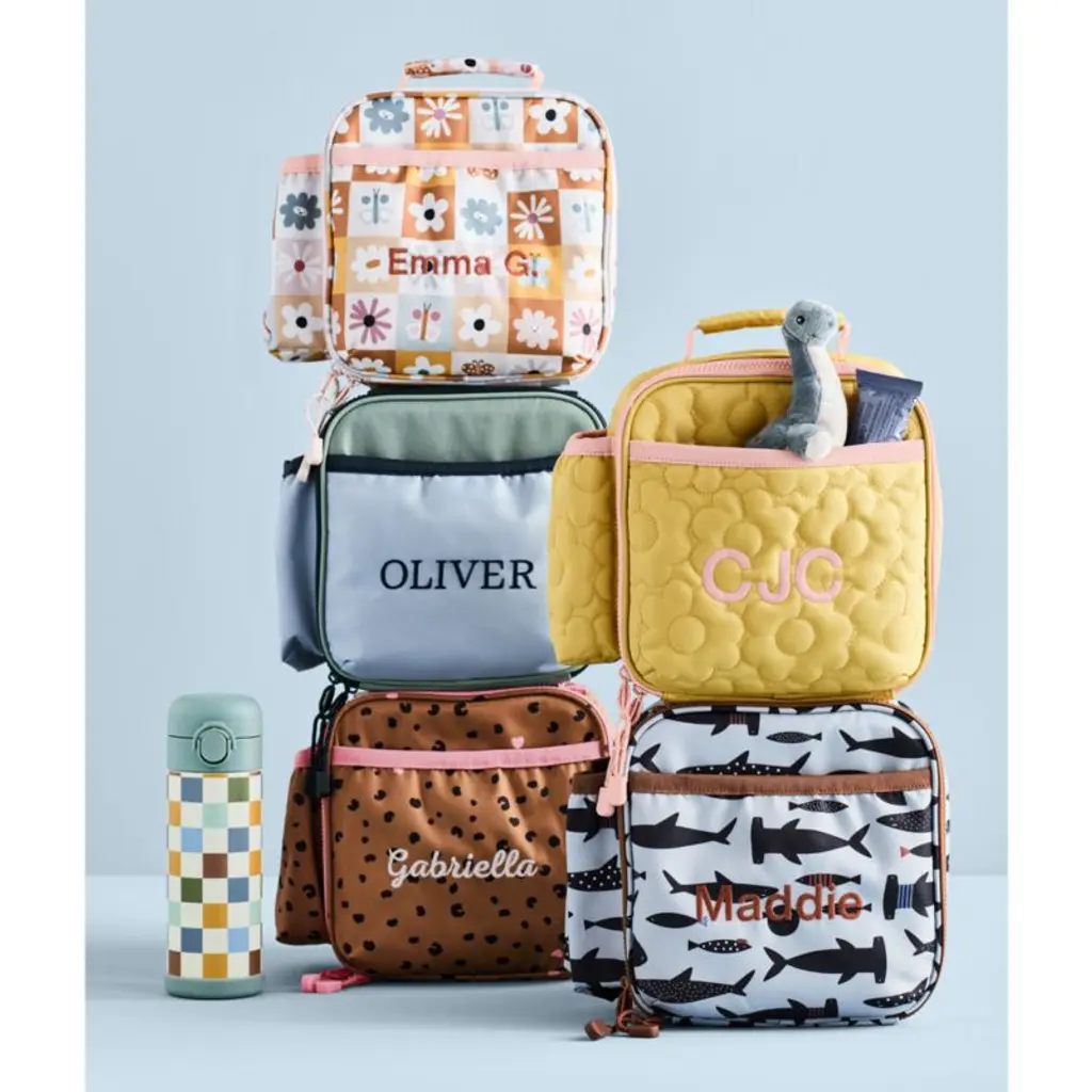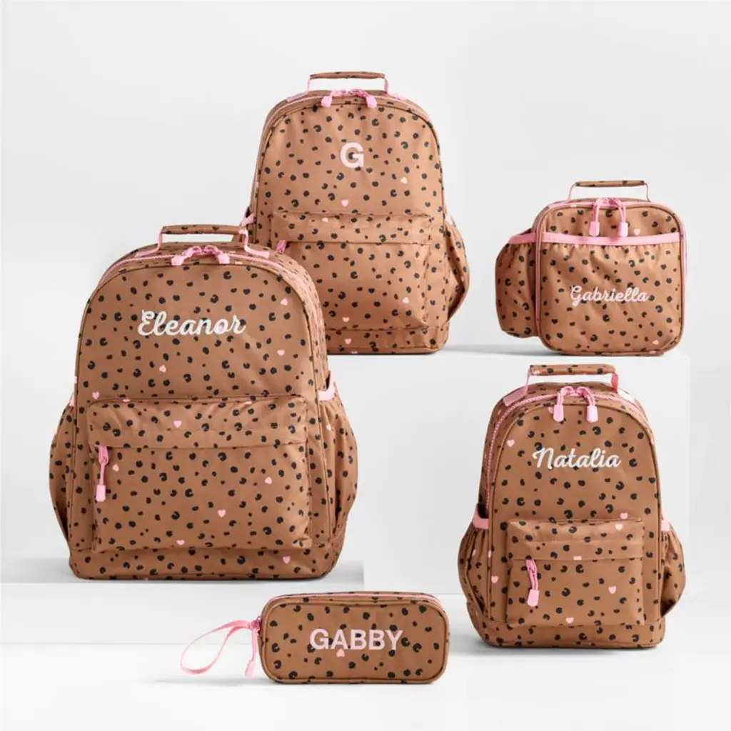 A fun and functional lunch box that's built to handle all the thrills and spills of a day in the wild. Cheetah spots and light pink hearts pattern the bag's tawny brown exterior, and pink trim gives it the perfect finish. Constructed of food-safe and supremely durable polyester made from recycled water bottles, our lightweight, easy-clean lunch box is roomy enough to hold multiple storage containers. Plus, it's insulated to keep meals just the way your kid likes themhot, cold or somewhere in between. An outer pocket safely stows a napkin, utensils, daily reminder notes and more, and a designated water bottle pocket ensures their drink is always close at hand. For spot-on style, pair the lunch box with the matching Cheetah Hearts backpack and water bottle.