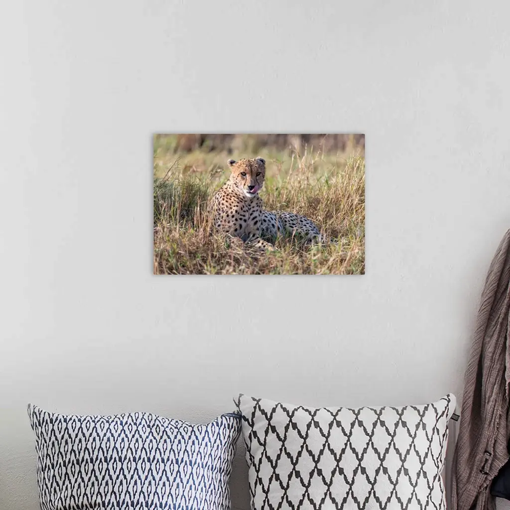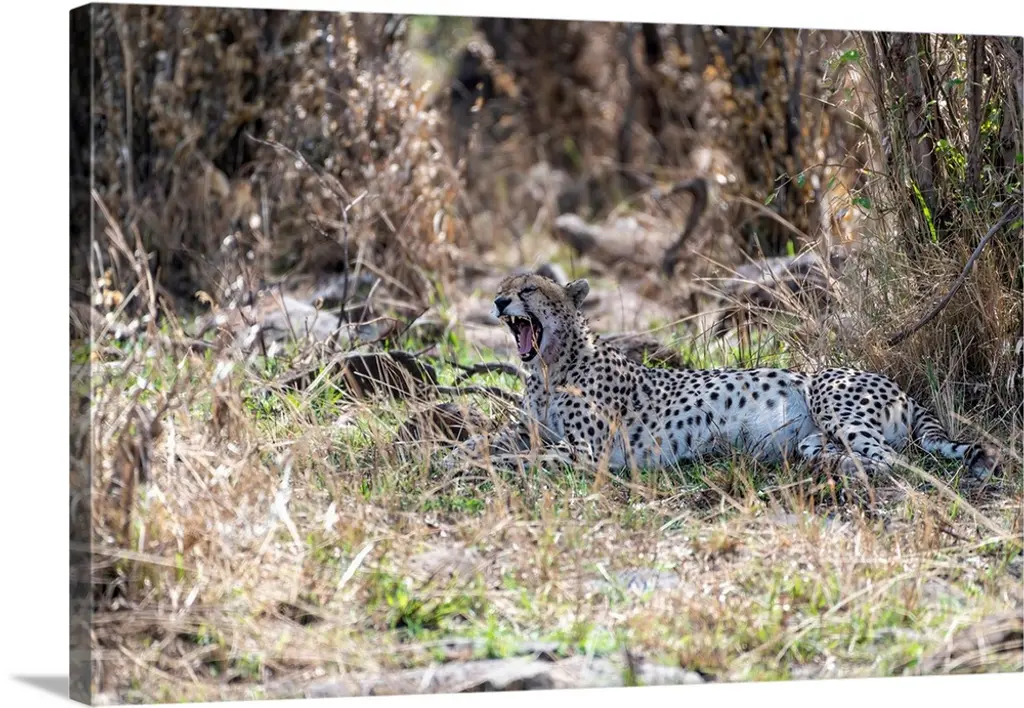 A Cheetah blends in perfectly in underbrush Serengeti, Tanzania, Africa