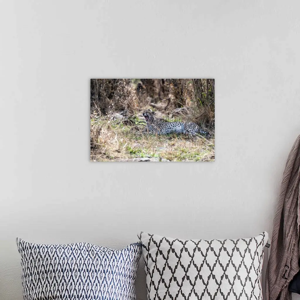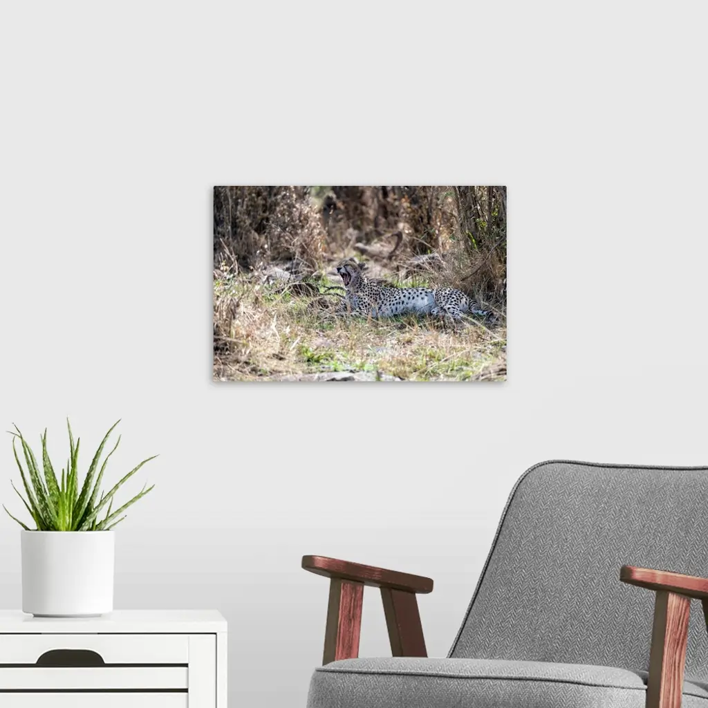 A Cheetah blends in perfectly in underbrush Serengeti, Tanzania, Africa