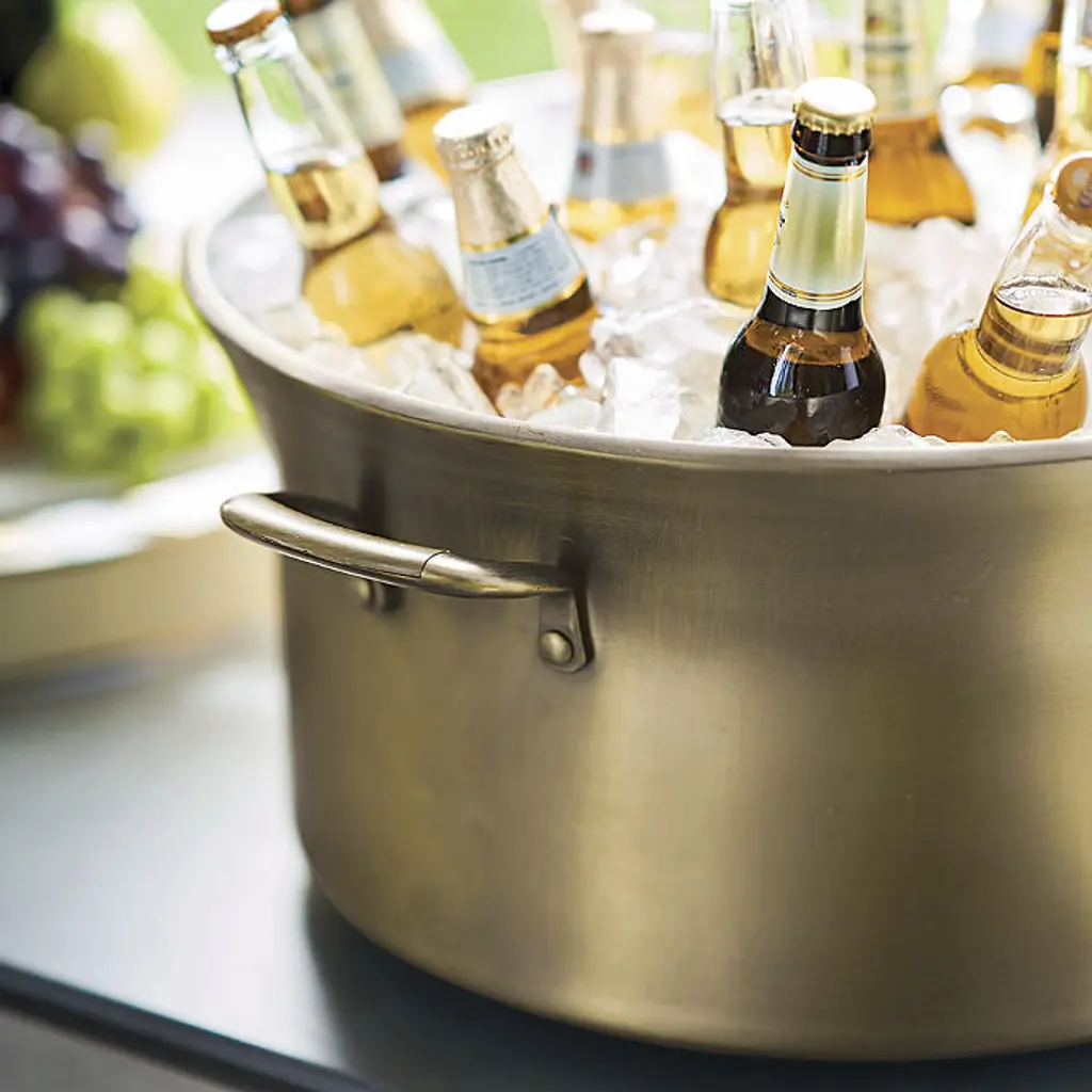Beautifully crafted with a burnished brass finish and walnut-finished wood inlaid handles inspired by Chef Symon’s signature style, this stately beverage tub can be placed on any surface without a care. Filled with beverages and ice, the double-walled stainless steel tub guarantees maximum cold retention and no condensation — making it ideal for large parties, indoors and outside. Double-walled 18/8 stainless steel allows a layer of air to function as the insulator Cast handles with walnut-finished wood inlay Sturdy handles facilitate lifting and carrying 21" beverage tub can hold up to 11 standard wine bottles Ample room for ice and drinks Can be paired with Chef Symon Pedestal to beautifully display the beverage tub Perfect for indoor or outdoor use Hand wash only A Frontgate exclusive. At Frontgate, our primary focus is quality. We guarantee that every product we sell will stand up to the supreme test – our customers' satisfaction. To learn more about our policies, visit our Shipping & Processing, Returns & Exchanges and Warranty & Price Guarantee pages. Beautifully crafted with a burnished brass finish and walnut-finished wood inlaid handles inspired by Chef Symon’s signature style, this stately beverage tub can be placed on any surface without a care. Filled with beverages and ice, the double-walled stainless steel tub guarantees maximum cold retention and no condensation — making it ideal for large parties, indoors and outside. Double-walled 18/8 stainless steel allows a layer of air to function as the insulator Cast handles with walnut-finished wood inlay Sturdy handles facilitate lifting and carrying 21" beverage tub can hold up to 11 standard wine bottles Ample room for ice and drinks Can be paired with Chef Symon Pedestal to beautifully display the beverage tub Perfect for indoor or outdoor use Hand wash only A Frontgate exclusive. At Frontgate, our primary focus is quality. We guarantee that every product we sell will stand up to the supreme test – our customers' satisfaction. To learn more about our policies, visit our Shipping & Processing, Returns & Exchanges and Warranty & Price Guarantee pages.