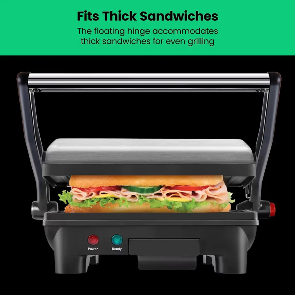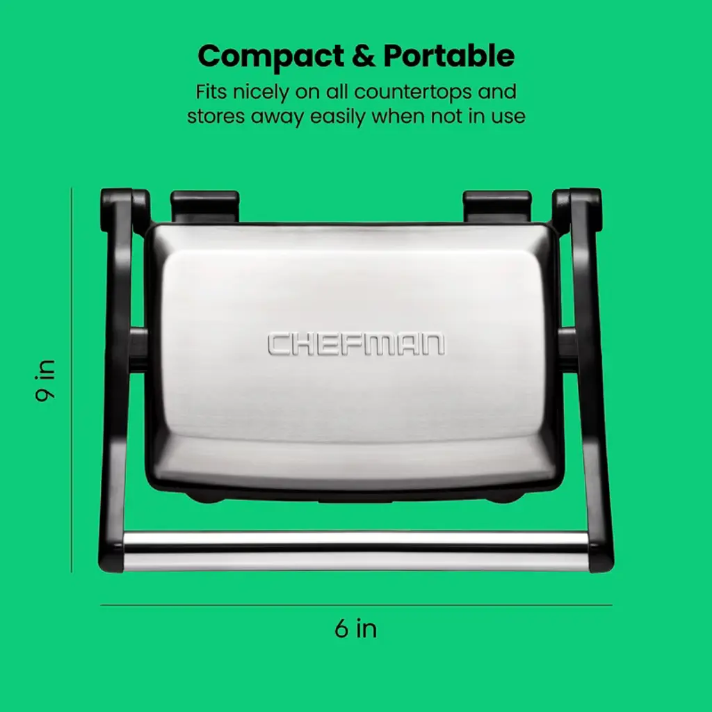 Chefman 3-in-1 Panini Press & Grill, 4-slice Non-stick, Opens Flat - Stainless Steel