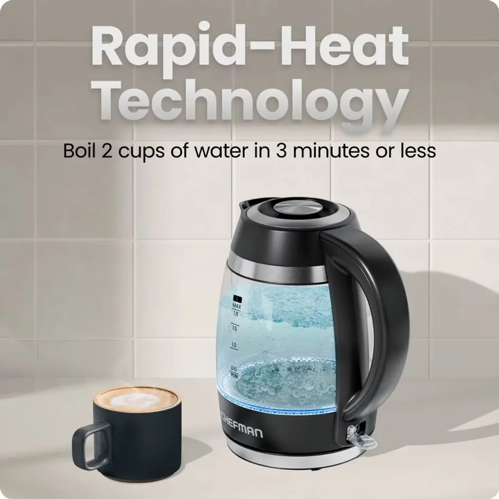 Chefman Fast-boil 1.8l Electric Kettle With Tea Infuser, Led Lights - Black